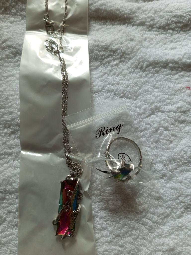 Náhrdelník s přívěskem Rainbow Stone Tree of Life Sada prstenů pro ženy Muži Dlouhý řetízek Listy z křišťálového skla Čtvercové náhrdelníky Prohlášení Šperky