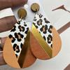 Dámské oboustranné náušnice s leopardím potiskem titanová ocel zirkon krystal PU kůže Bohemia náušnice