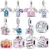 925 Sterling Silver Zavazadla Nákupní taška Kufr Láska Cestování Sladké korálky Fit Charms Náramek Šperky Ženy