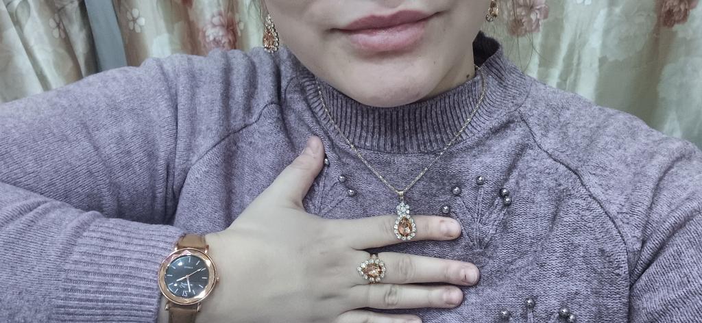 (Dámské hodinky + náhrdelník + prsten + náušnice) Dámská sada hodinek Luxusní hodinky Quartz s koženým řemínkem