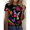 Butterfly and Floral Print T-shirt, Casual Crew Collar Short Sleeve Top Spring/Summer, Women's Wear