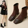 Fall New Chunky Single Shoes Women's Fashion Square Head Suede Color Matching Front Lace-up Comfortable High Heel Ankle Boots