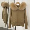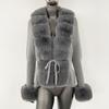 Autumn Winter Women's Fur Coat Patchwork Knitted Sweater Bandage Fur Cardigan Detachable Collar Jacket Faux Fur Coat