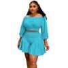 Plus Size Women's New Line Neck Fluffy Waist Casual Two Piece Suit