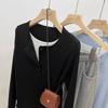 Milk blue plus velvet fake two-piece long-sleeved bottoming shirt for women in autumn and winter with brushed inner, slimming and chic T-shirt top