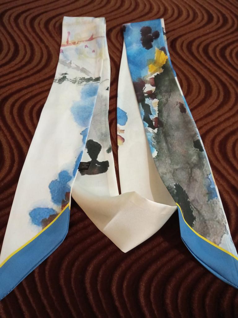 Krásná neobvyklá šála. Hodí se k jakýmkoli letním halenkám a tričkům. Mínus - velmi kluzká
