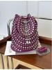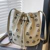 Small Bag Rivet Drawstring Bucket Bag Women Design Rivet Hollow Handbag Punk Style Hollow Shoulder Messenger Chain Women's Bag