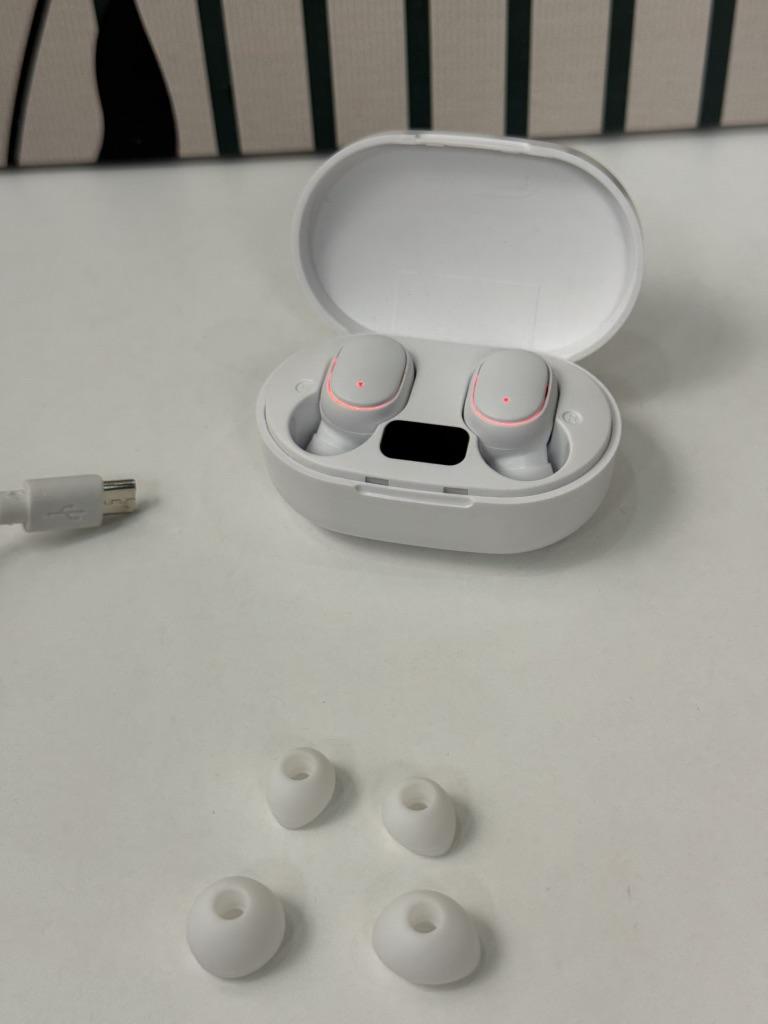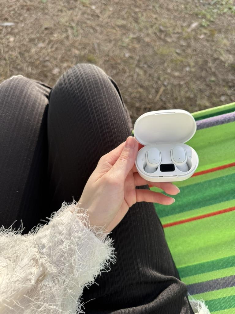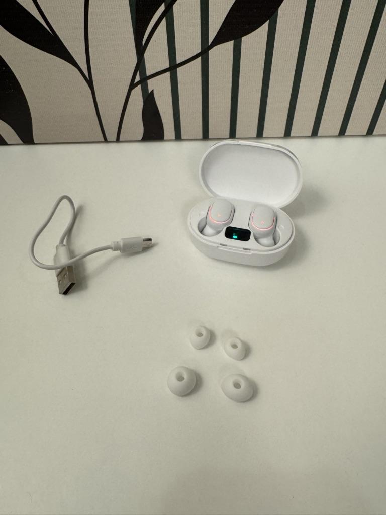 Bezdrátová Bluetooth sluchátka. Zahrnuta: ✔️Sluchátka. ✔️Kabel pro nabíjení pouzdra. ✔️Uživatelská příručka. Sluchátka se rychle připojila přes Bluetooth. Víko pouzdra se zacvakne a sluchátka jsou magnetická. Na pouzdru se zobrazuje úroveň nabití samotného pouzdra. Nabíjení trvá 2 hodiny pro poslech hudby. Zvuk ve sluchátkách je dobrý. Sluchátka v uších drží dobře. S objednávkou spokojen. Příjemné nakupování všem.