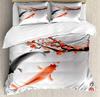 Japanese Goldfish Duvet Cover Set Fantasy Yin Yang Cherry Blossom Flowers Comforter Cover Set Blue Sea Wave Breathable Bedding