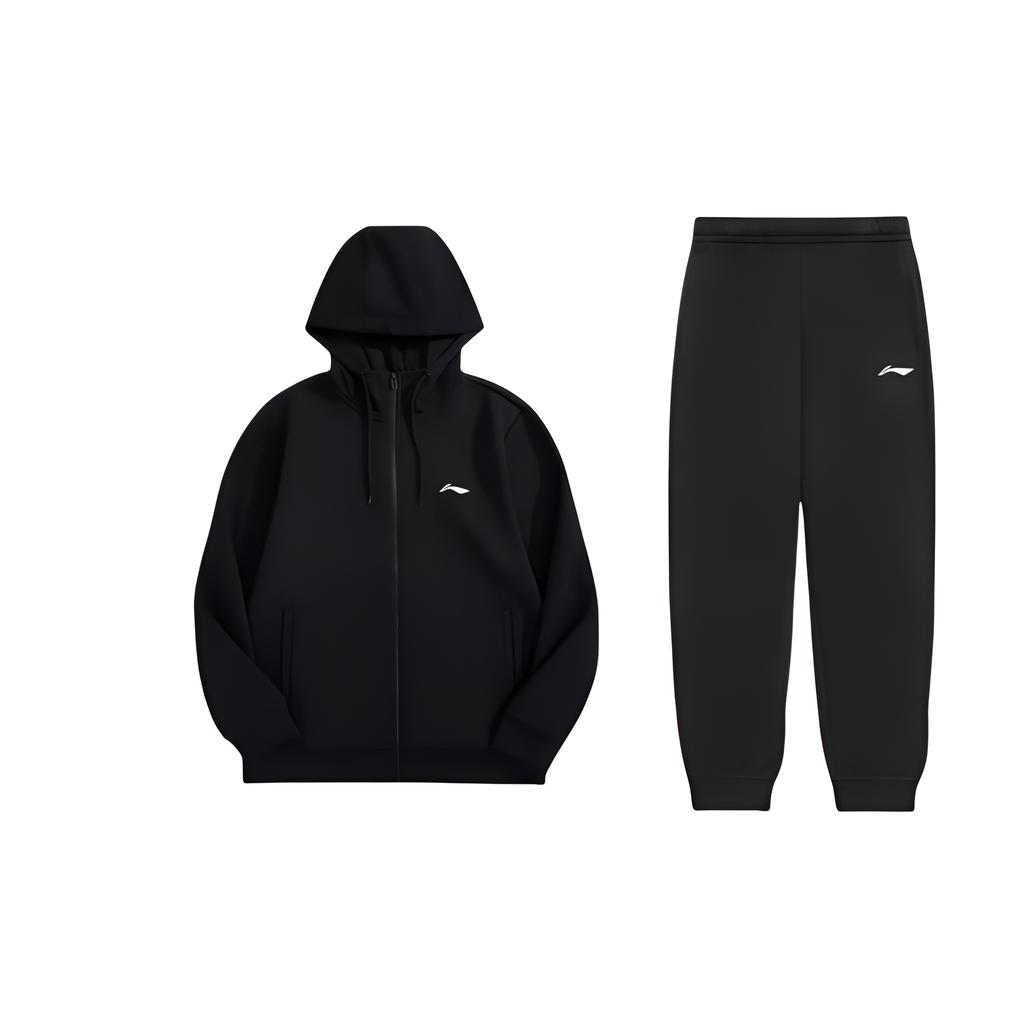 Li-Ning Minimalist Brand Logo Printed Hoodie Long Sleeve Sweatshirt With Cuffed Casual Sports Suit Unisex Tracksuit Black AWDUH53-1+AKLSG35-1