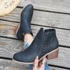 Wish women's shoes new thick heel large size hollow women's boots Martin boots middle heel side zipper short boots women
