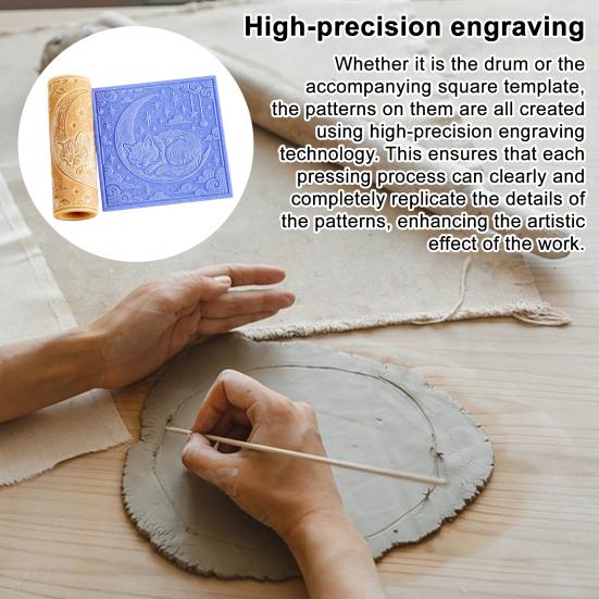 Vysoce přesná gravírovací technologie zaručuje detailní a přesnou replikaci vzoru, čímž zvyšuje umělecký dojem z vašich výtvorů.. Tento váleček, který zdobí okouzlující měsíční motivy doplněné hvězdami a mraky, vyzařuje snovou a hřejivou atmosféru, ideální pro jedinečné ruční práce.