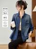 Elevate your wardrobe this season with this stylish women's retro denim shirt, perfect for embracing a casual yet chic look. Crafted from a luxurious soft satin, this shirt boasts a slimming, mid-length design that flatters any silhouette. Its loose fit and turn-down collar add a touch of elegance, making it an ideal choice for various occasions. Whether paired with jeans for a laid-back vibe or dressed up with accessories for a more polished appearance, this long sleeve top is a versatile addition to your autumn collection.