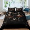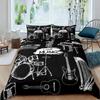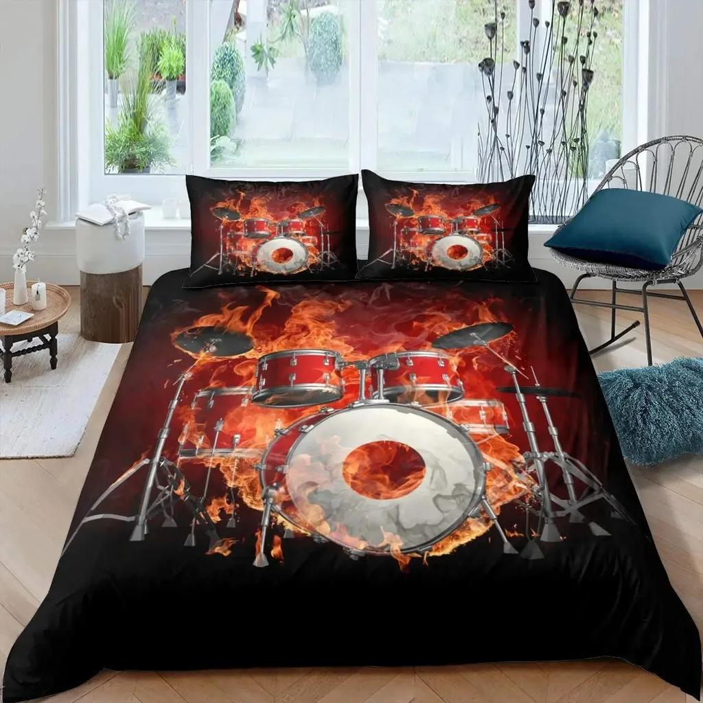 Drum Kit Duvet Cover Set,Hip Hop Bedding Set Queen Size,Rock Music Gold Flame Comforter Cover Musical Instrument Quilt Cover Set