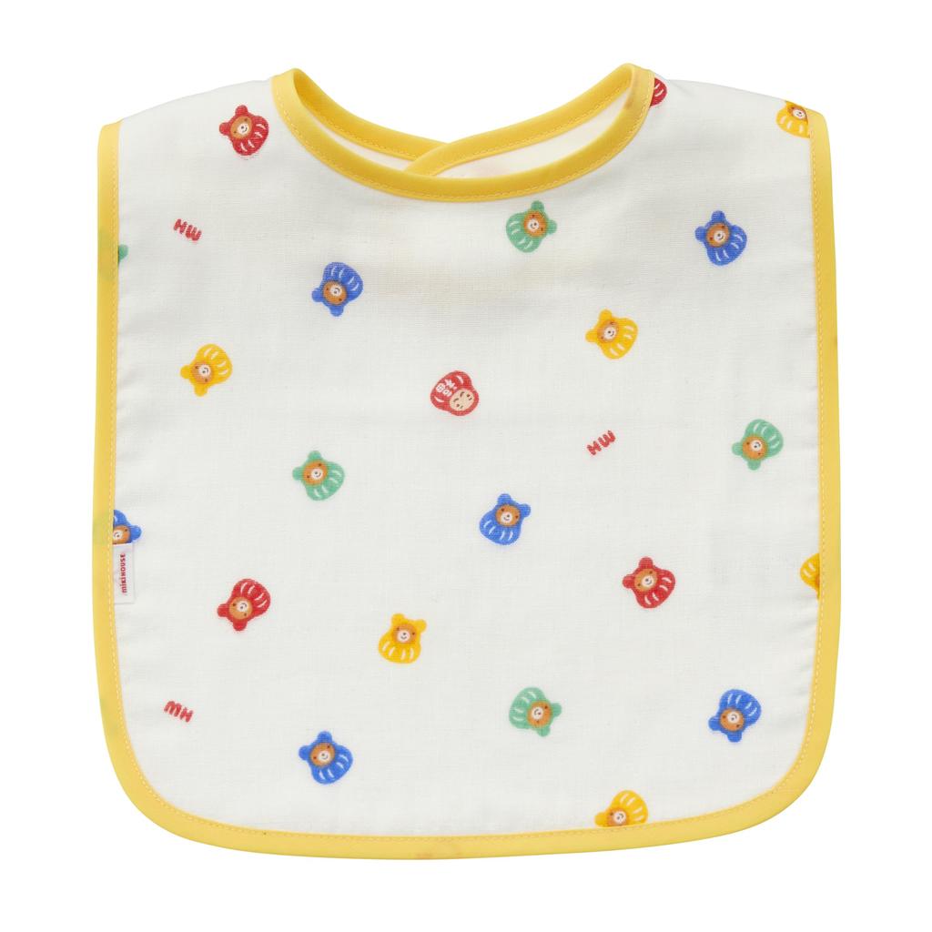 ☆ This is a Miki House bib with a print of a beckoning cat and a lucky daruma. It's a popular, large Miki House gauze bib. The auspicious Japanese pattern makes it a great baby shower gift or present. The gauze material is gentle on the skin and becomes softer with use, making it safe to use when wiping around your baby's mouth. It can be put on and taken off with the hook-and-loop fastener on the back, and the water-repellent material prevents moisture buildup and prevents water from seeping in. You can never have too many handy Miki House bibs, making them a recommended baby item.