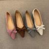 Fashion Low Heeled Single Shoes Autumn New Pointed Toe Suede Bow Soft Sole Soft Side Non-Slip Low Top Shoes