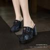 Γυναικεία σανδάλια 2024 Νέα καλοκαιρινά νέα τζιν παντόφλες Γυναικείες Baotou Lazy Fashion Ψηλοτάκουνα Χοντρά τακούνια Μόδα παντόφλες
