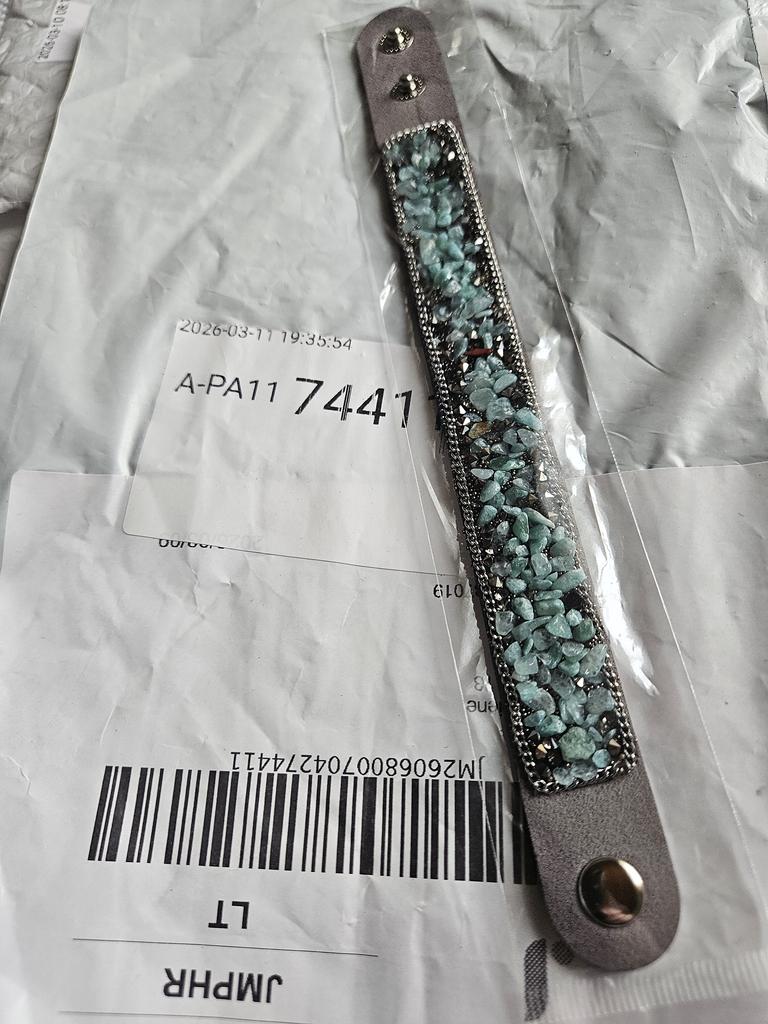 Lovely lovely bracelet. Made with love & quality. Real gems (jasper) along with good quality crystals. Gives beautiful and classy appearance 🥰 I'm a bit concerned about how long the the base fabric will last. Unfortunately it's not a leather, so it can happen that one day the fabric might tear off.