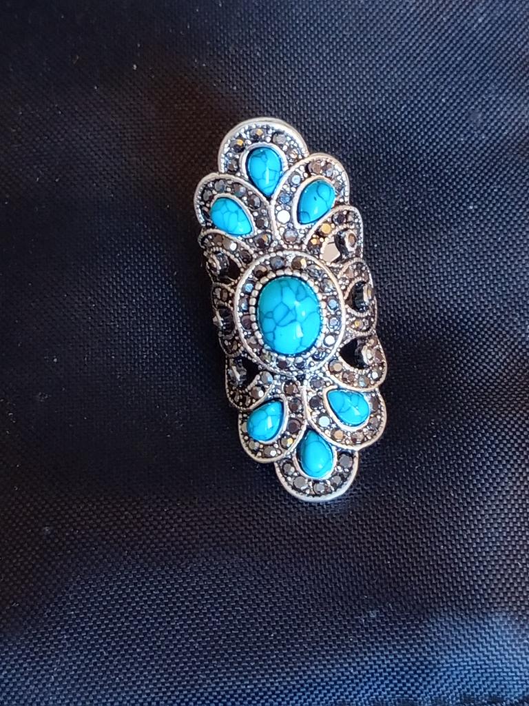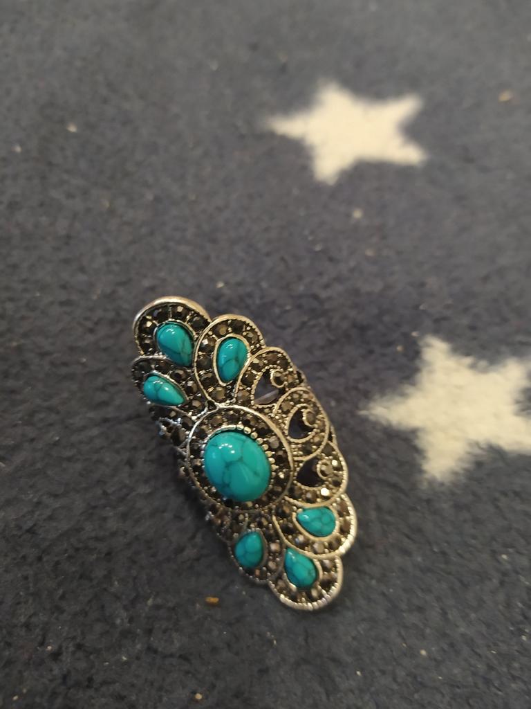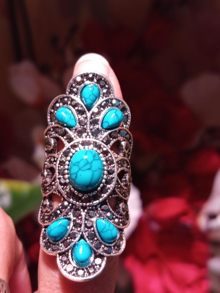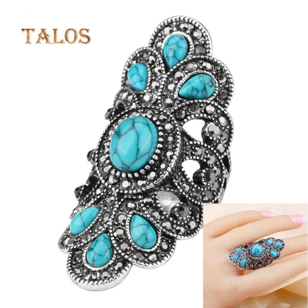 Vintage Inlaid Turquoise Crystal Stone Finger Ring Male Female Rings Hollow Party Symmetric Jewelry