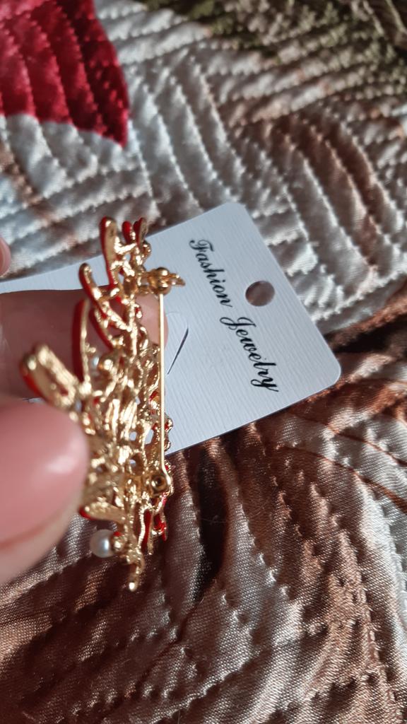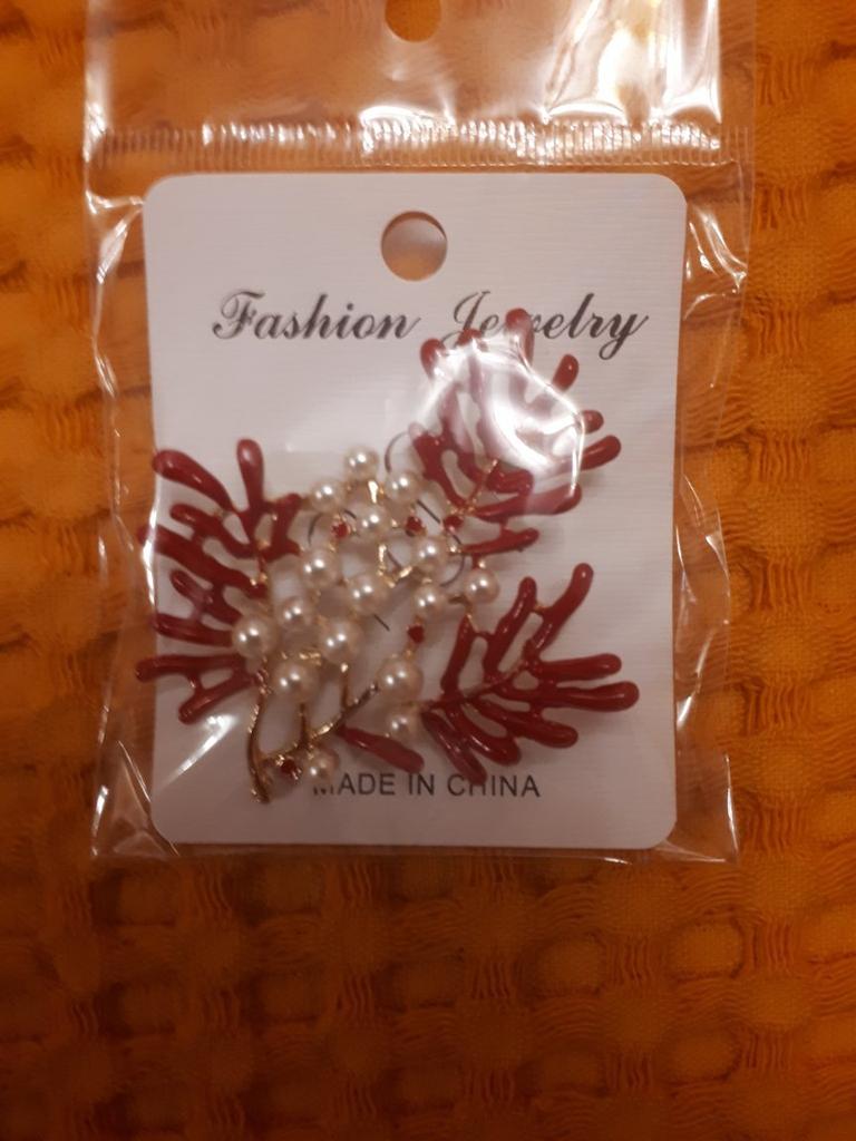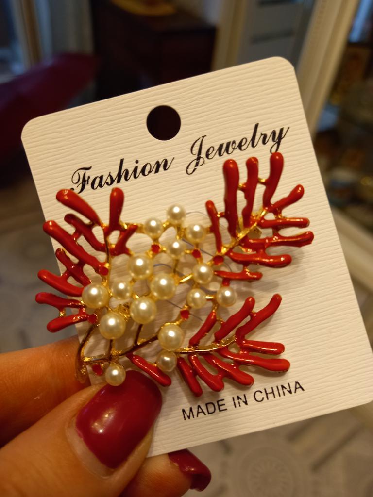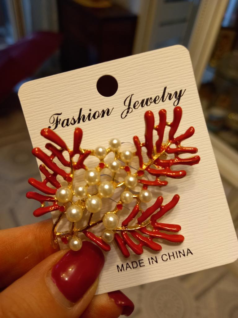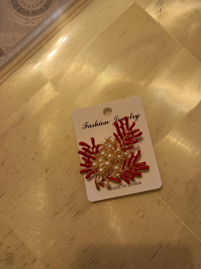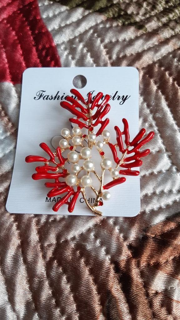 Fashion Women Red Enamel Pearl Maple Coral Brooches Costume Lapel Jewelry Gift