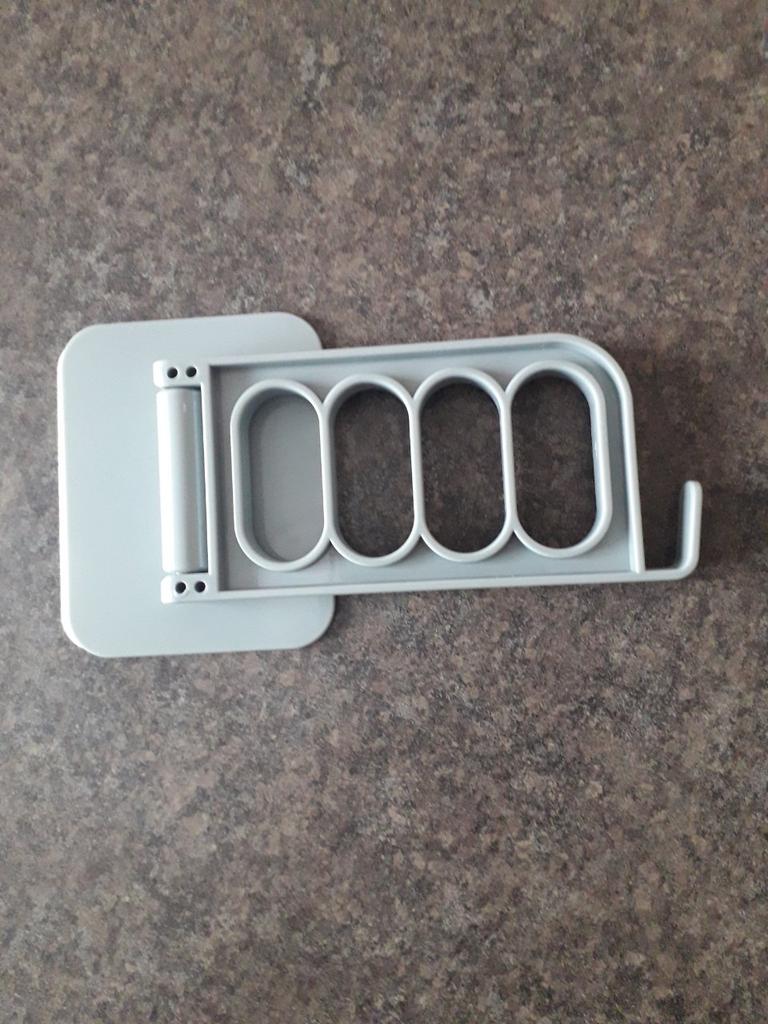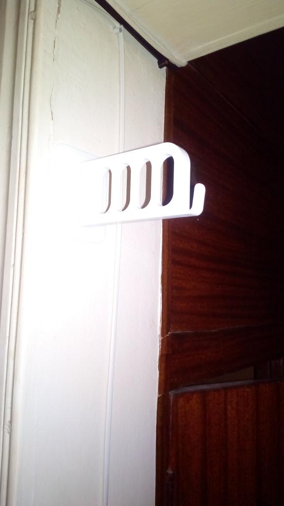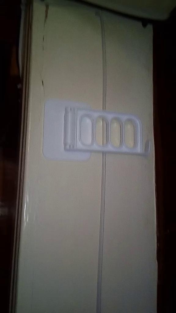 Attached to the outer edge of the closet, can only hold two hangers with blouses, for reliability attached with double-sided tape. Now can hold a terry robe too.