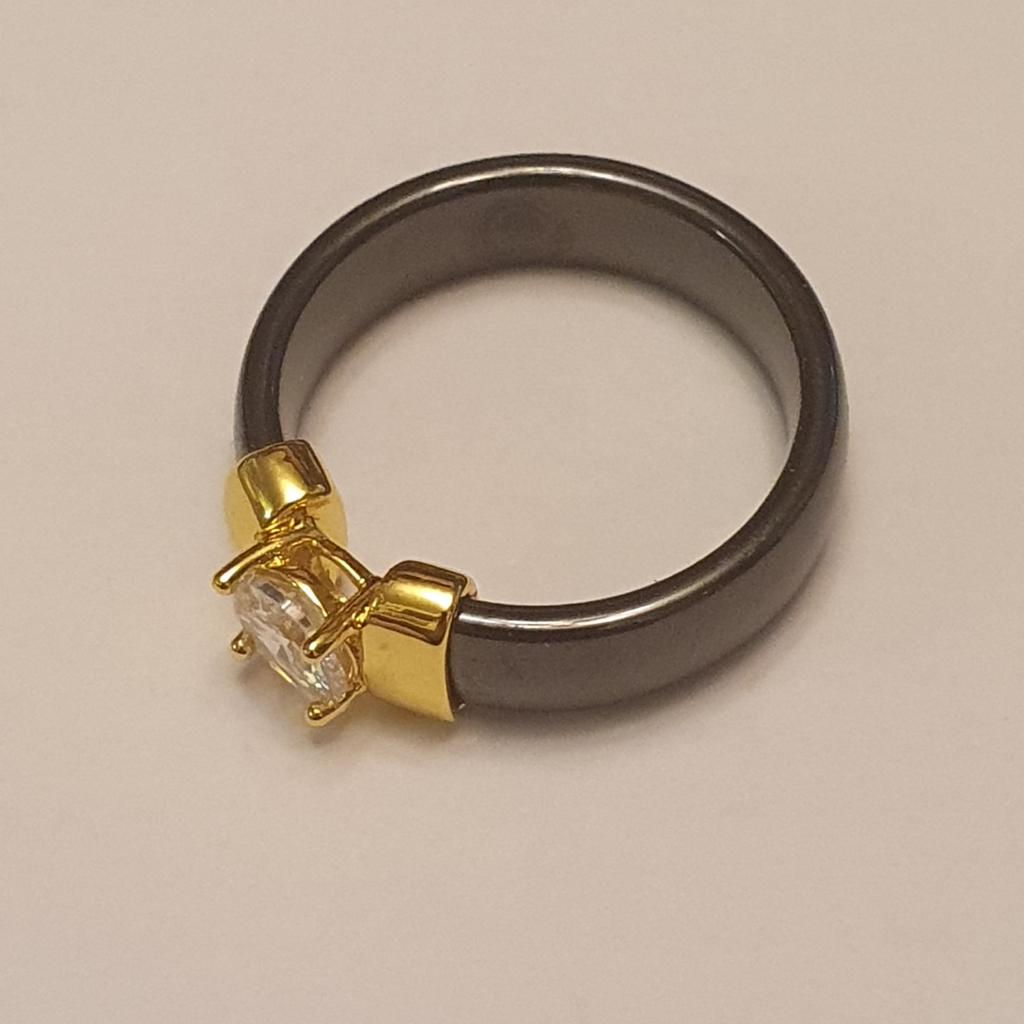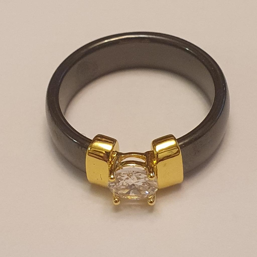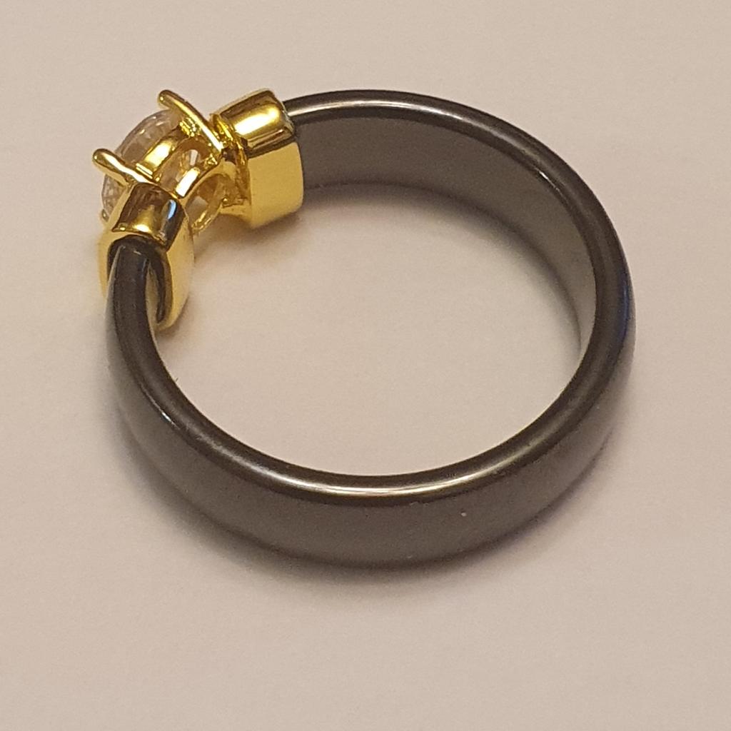 Smooth Black White Ceramic Ring Simple Crystal Bride and Groom Jewelry Gifts Size 6-10
