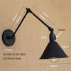 Retro Wrought Iron Black Long Arm Wall Lamp E27 Studio Bedside Bedroom Loft Aisle
