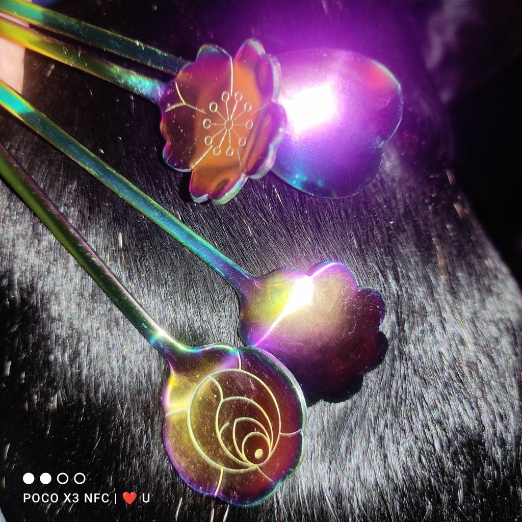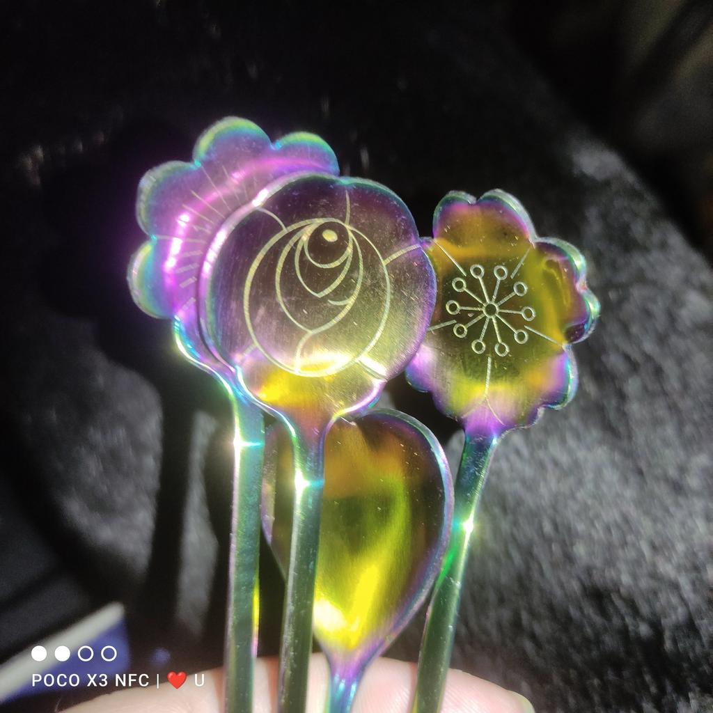 4 Pcs/Lot Stainless Steel Tableware Rainbow Flower Ice Spoon Sugar Spoon Tea Coffee Spoon Stir Bar Sp
