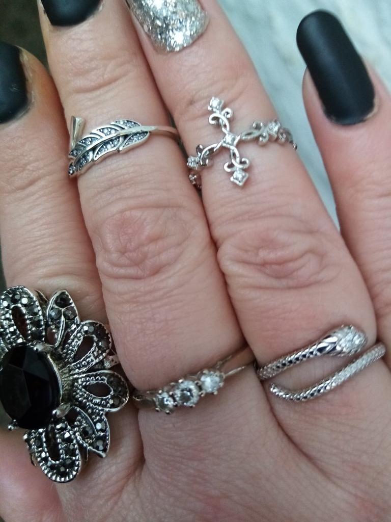 Gorgeous feather detail real silver ring from the BAMOER jewellery company. ❤️ Arrived in great condition. Looks perfect and nicely detailed and it is actually real 925 silver unlike most of the rings on Wish which claim to be silver but are most definitely not. 🖤 In these photos I'm actually wearing three rings from the BAMOER company. The feather, the cross and the snake rings are all from this company - that's how good they are. ❤️ I completely trust the BAMOER jewellery company and I will buy from them again and recommend them to my friends. 🖤 The ring itself is adjustable. I've taken it to wearing it on the top half of my finger (see photos) where it feels nicely secure, but you can wear it on any finger and any part of the finger you desire. ❤️ The feather is rich in detail and very beautiful. It comes in a little pouch. I am very pleased with my purchase and would recommend this company to anyone. 🖤 Been wearing this ring for a while now and it is still gorgeous and one of my favs. ❤️ 5 stars ⭐⭐⭐⭐⭐ 🖤