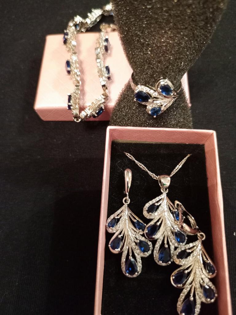 Silver Color Jewelry Set Blue Stone Birthstone For Women Stones Leaves Earrings