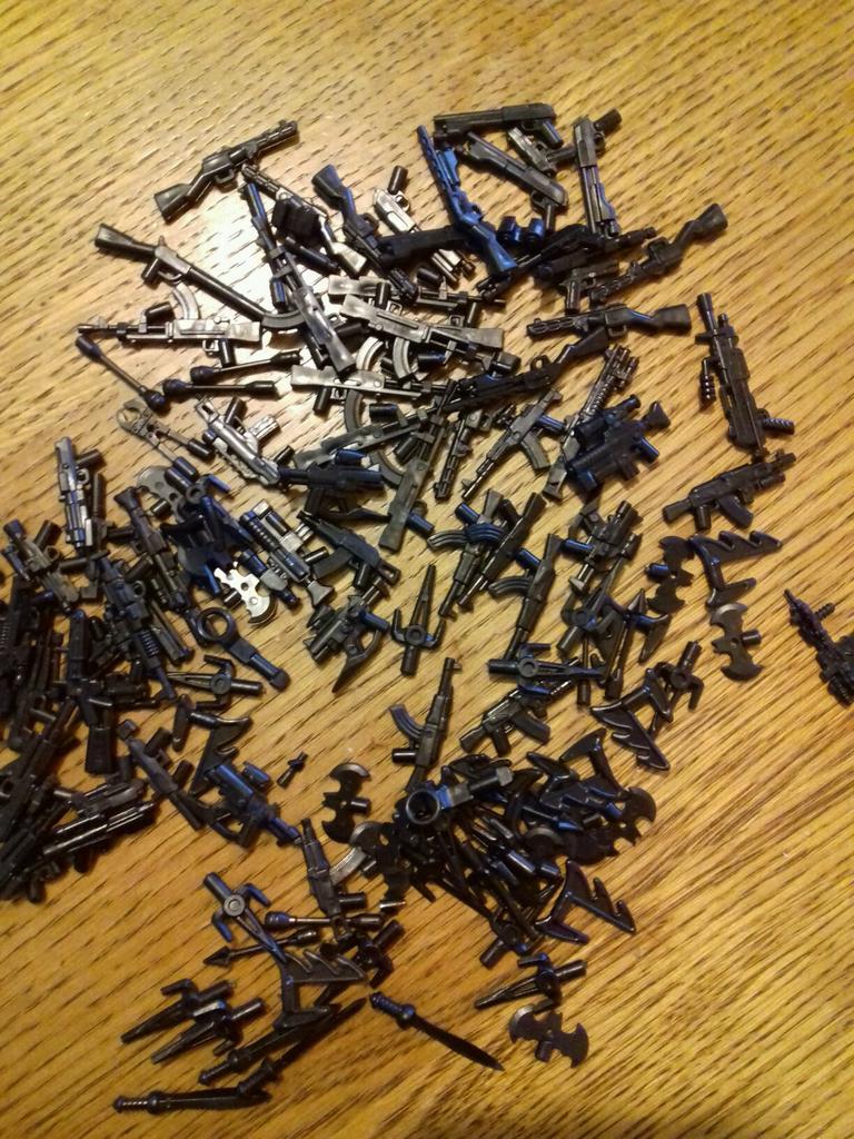 A bunch of all sorts of automatics for Lego little men. I didn’t count, but I think there are about a hundred.
