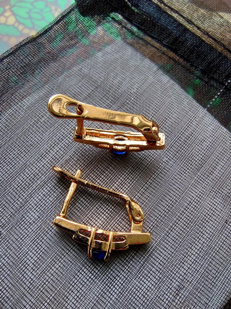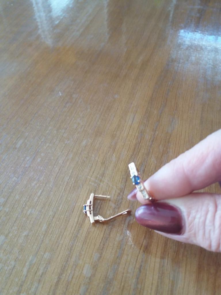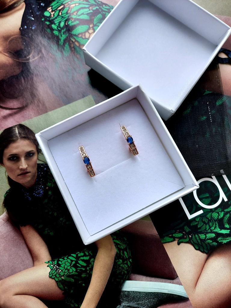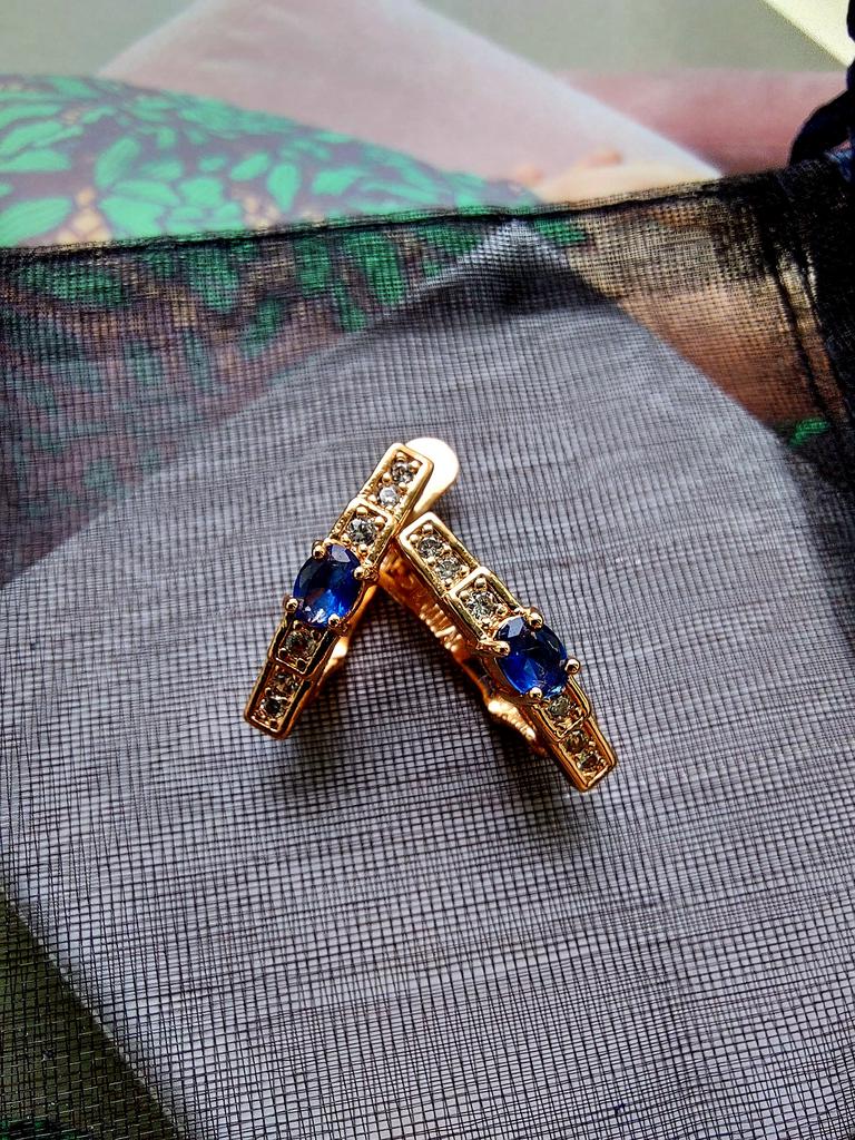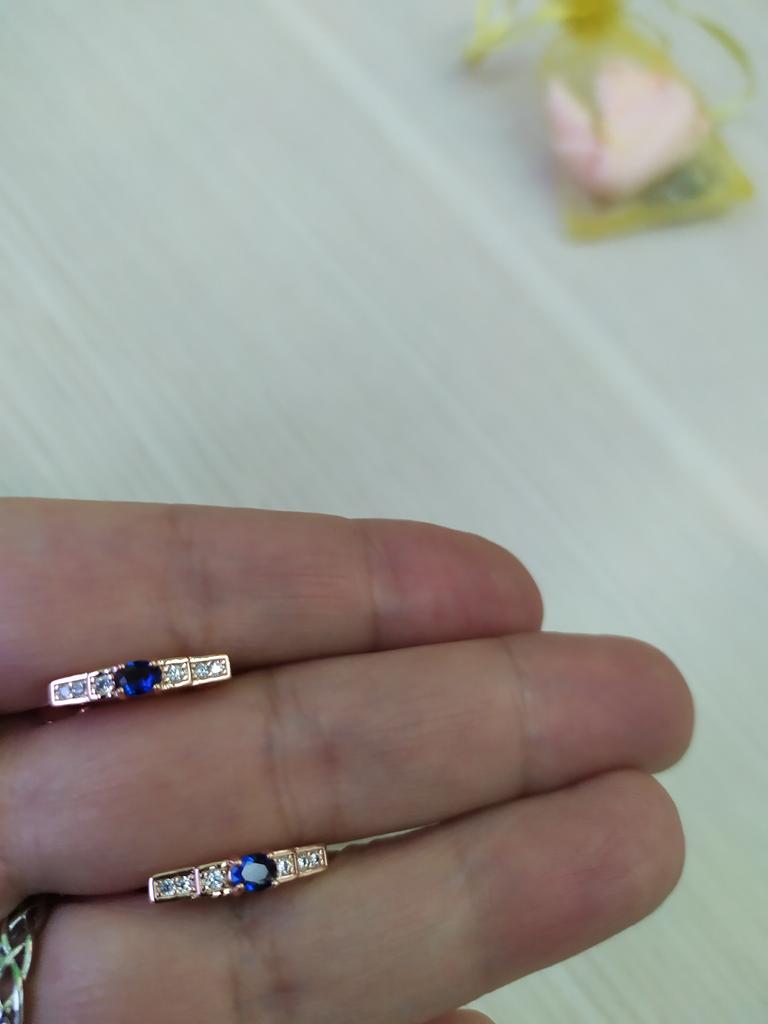 Very pretty golden earrings and small blue stone, sapphire style. Very good. Thank you Joom