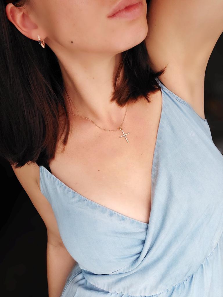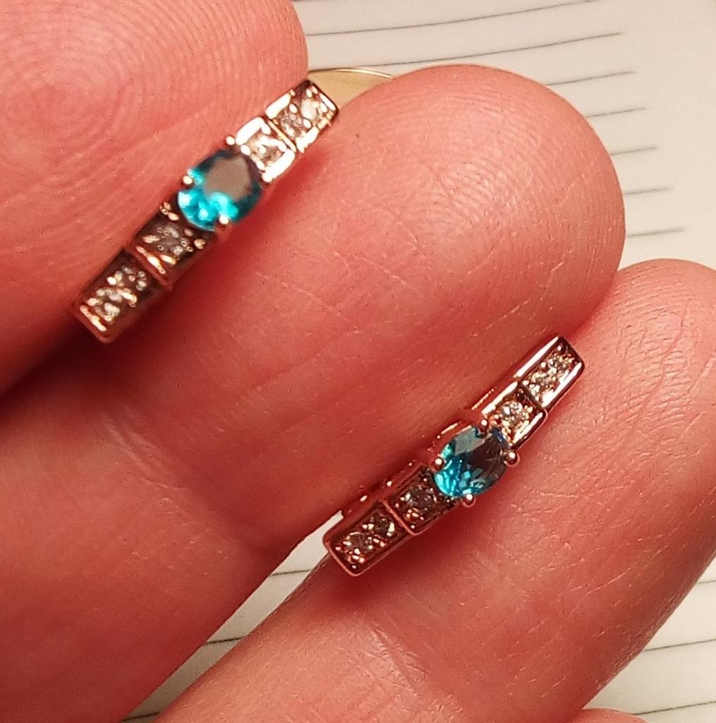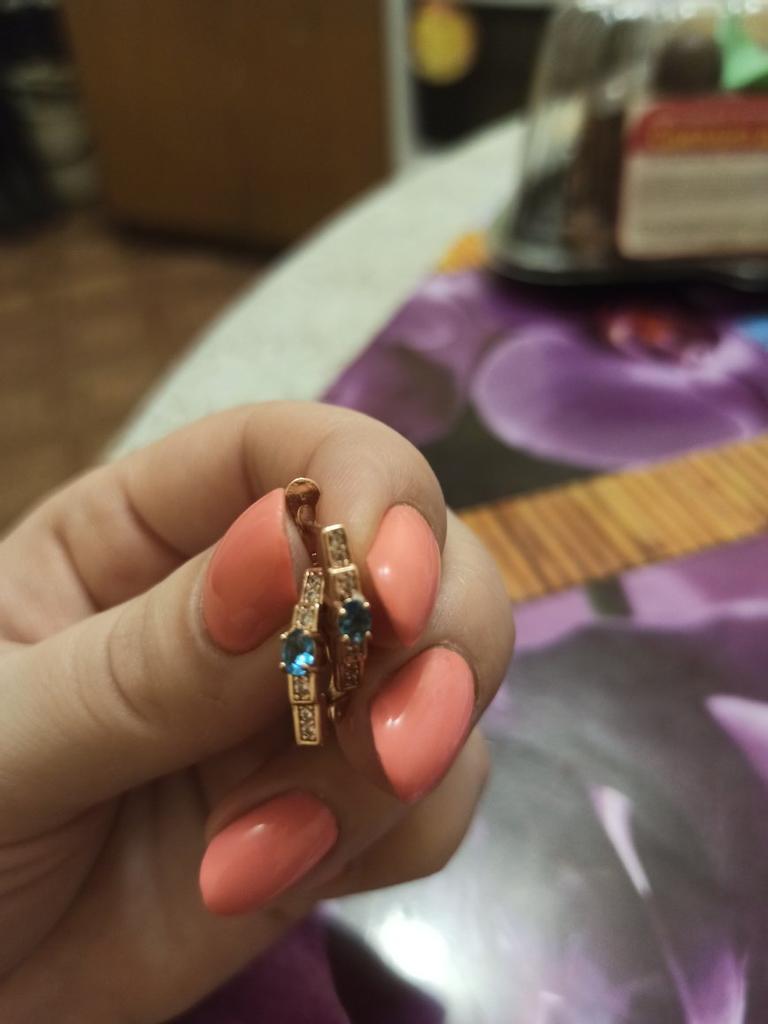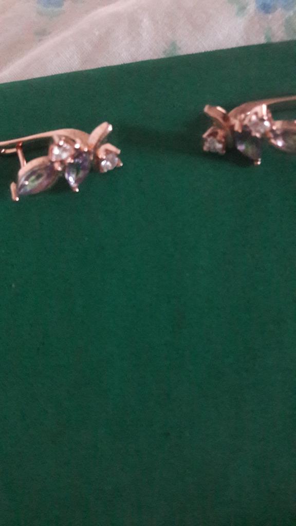 Very pretty golden earrings and small blue stone, sapphire style. Very good. Thank you Joom