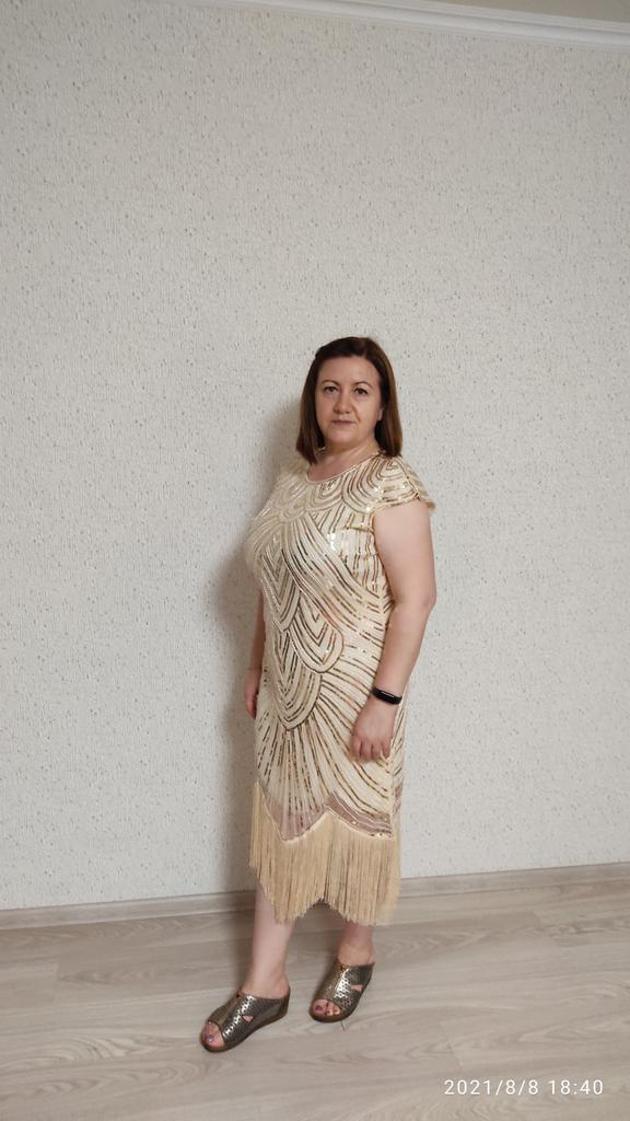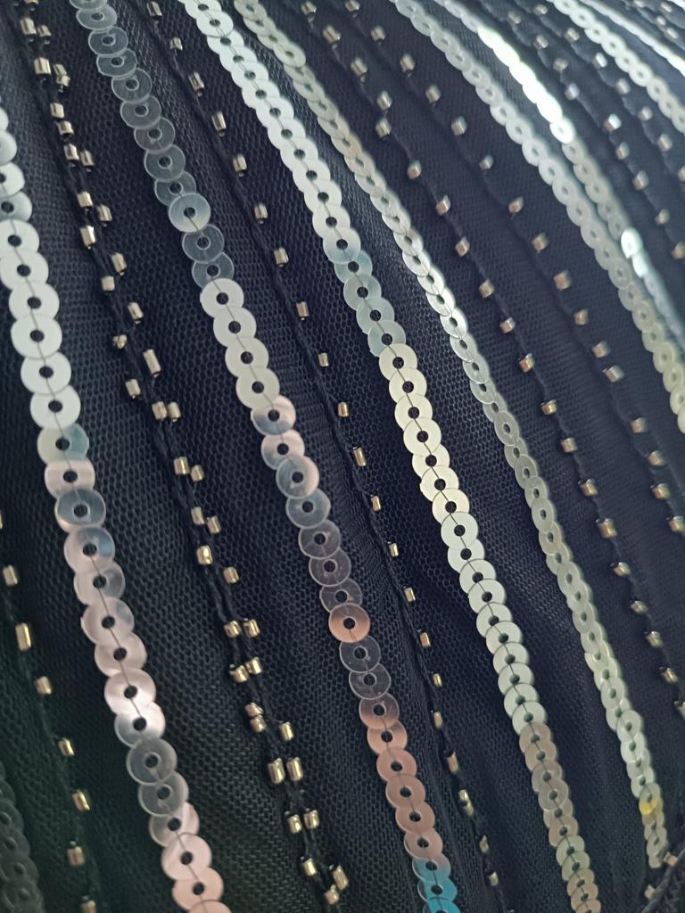 The dress is much better and more interesting than I expected. Sequins and beads sewn on perfectly.