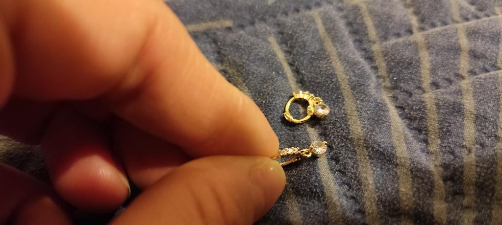 I have received the product correctly and the delivery was quite fast, so for that great part. The earring is beautiful, fine and very elegant, but I can't say the same about the quality, since I've been wearing it for less than a couple of weeks and it has already left the hole in my ear green. I thought that for the price it has, the quality would be much better, since it is not cheap either. So I'm pretty disappointed...