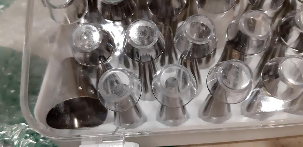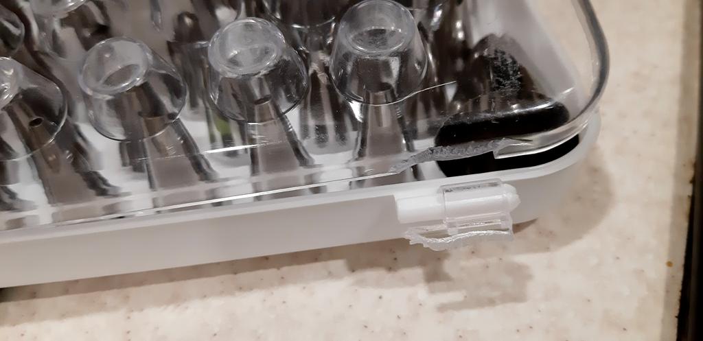 The product arrived damaged, in particular, the plastic cover was completely broken off on one side, and cracked on the other. That is, it will fall off if you open it. Calculated poorly in 2 plastic bags. While she was carrying an incredible amount of stuff. The nozzles themselves look normal. Didn't try
