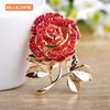 Blucome Full Austrian Crystal Blue Rose Flower Brooches Gold-color Coat Collar Plant Brooch Wedding Boutonniere Pullover Pins