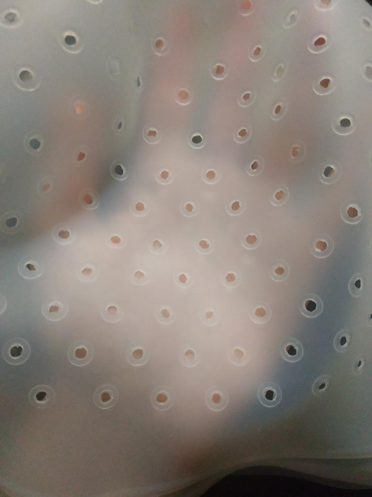 The cap is made of good silicone, odorless, without holes, the holes are pierced during the process. Not little.