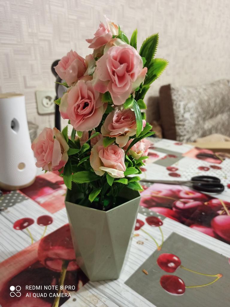 Super flower pot very very good quality of the roses 🌹 good size for pleasant decoration I recommend this seller I thank joom cordially mercy