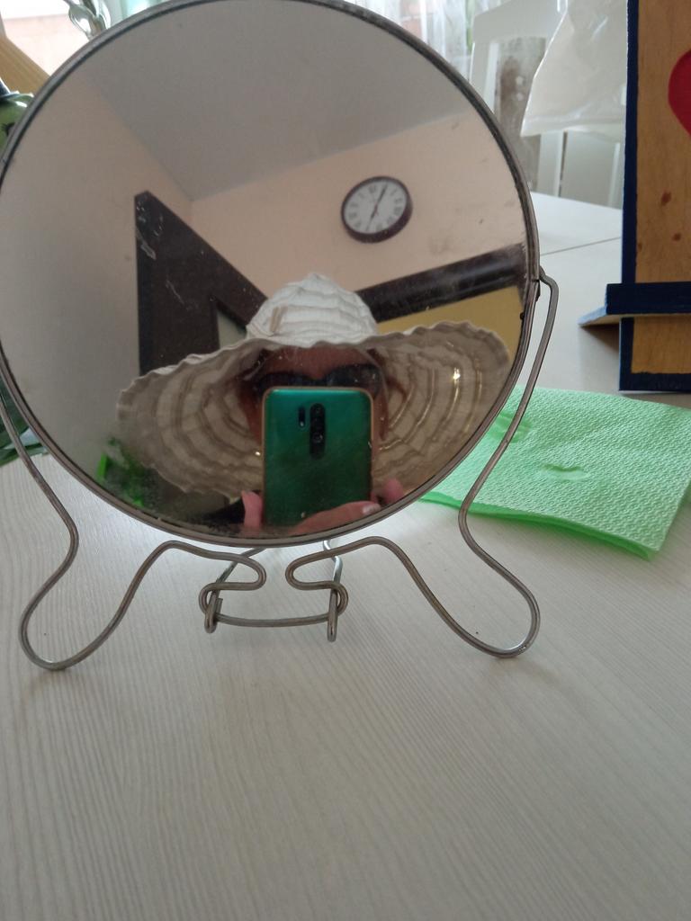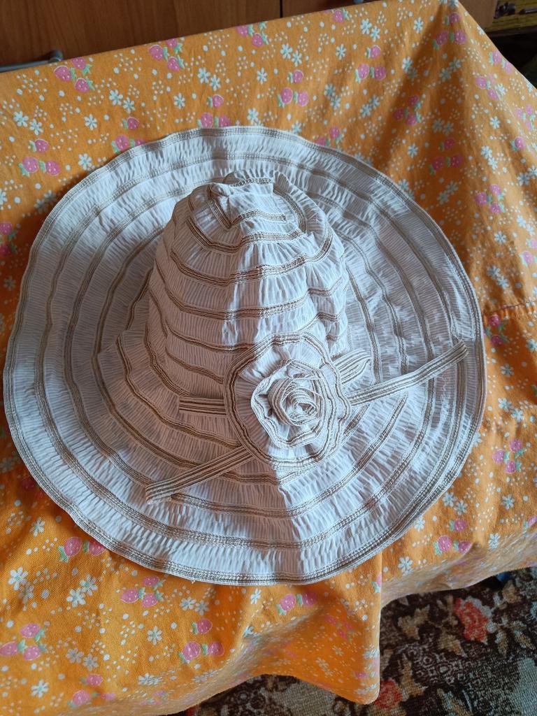Beach hat, can be fixed in different shapes (on wire). Very convenient.