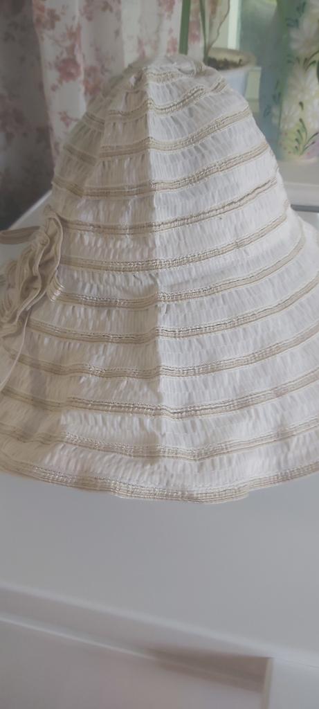 The hat is super, linen color, adjustable to the head, easy to straighten. The brim is wide and covers the shoulders.