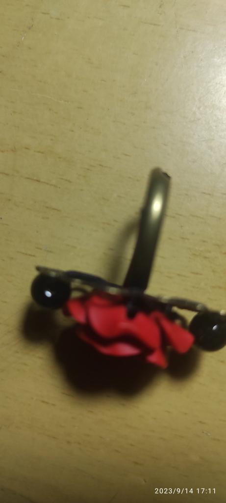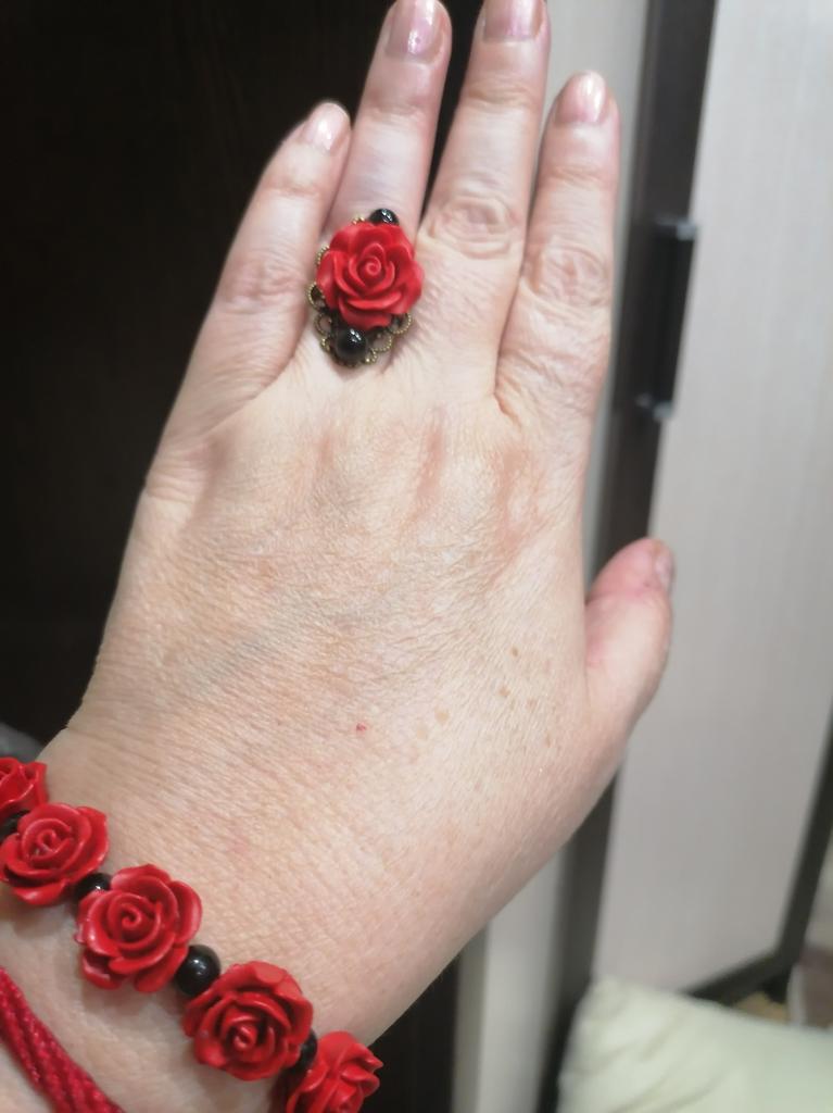 The ring is beautiful, the rose is bright red, 2 cm in diameter. For any size