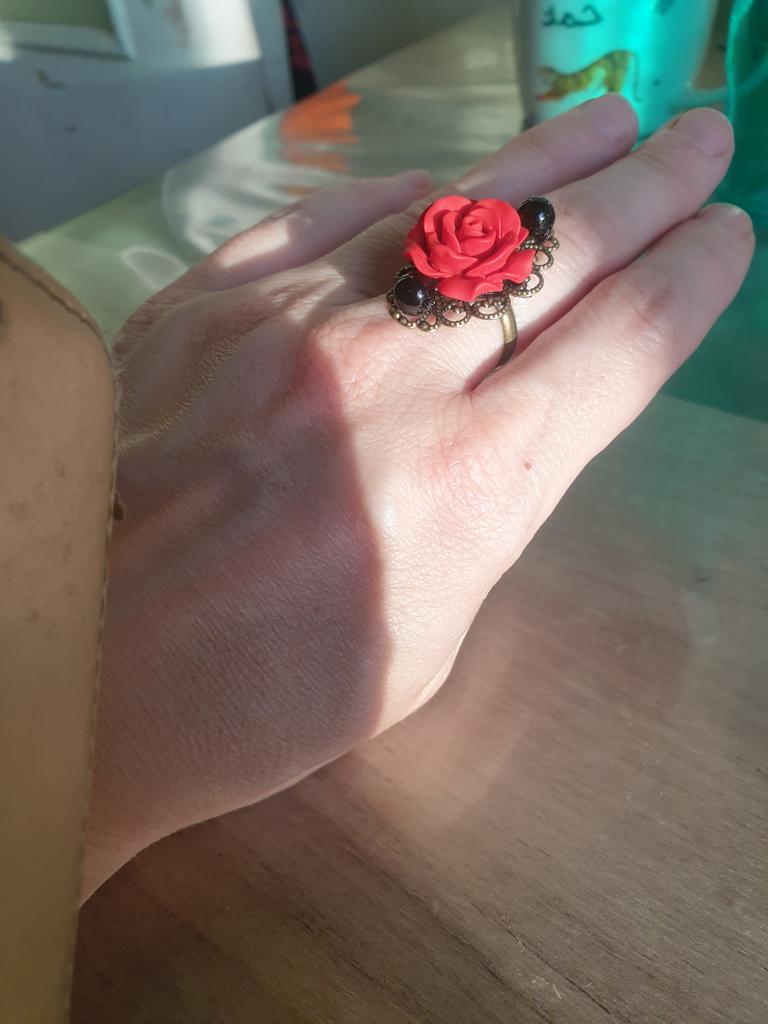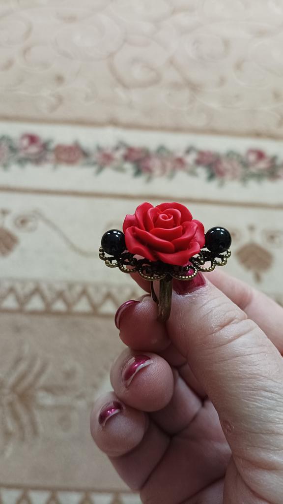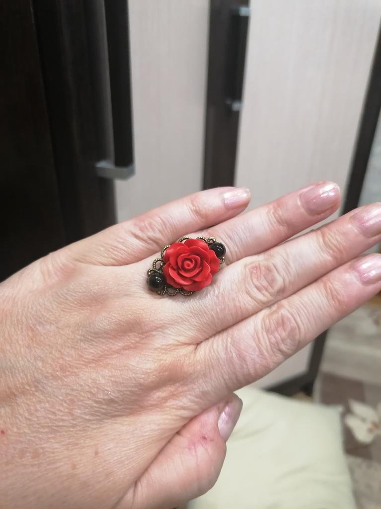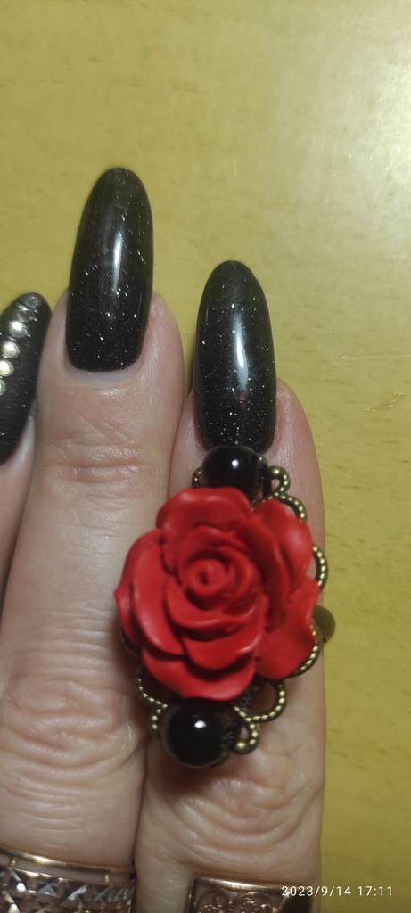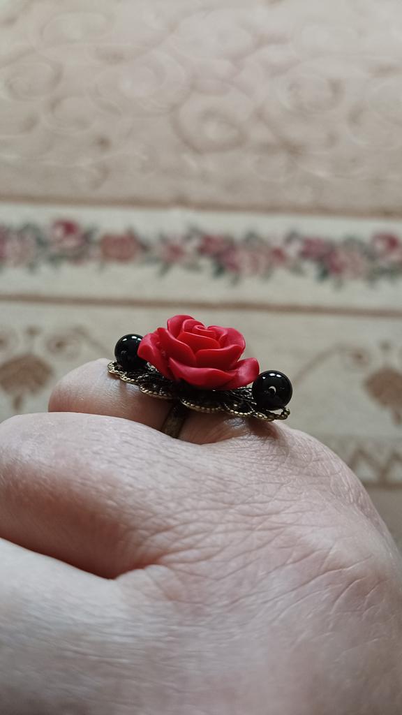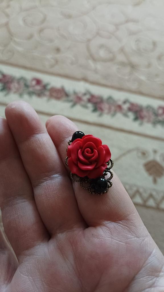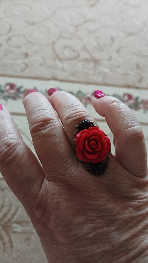 Ring in Gothic style. Red rose in black and gold frame. Looks impressive, the size is adjustable. I recommend it.♥️✨💯✨🌹, 🌹 🌹 😍