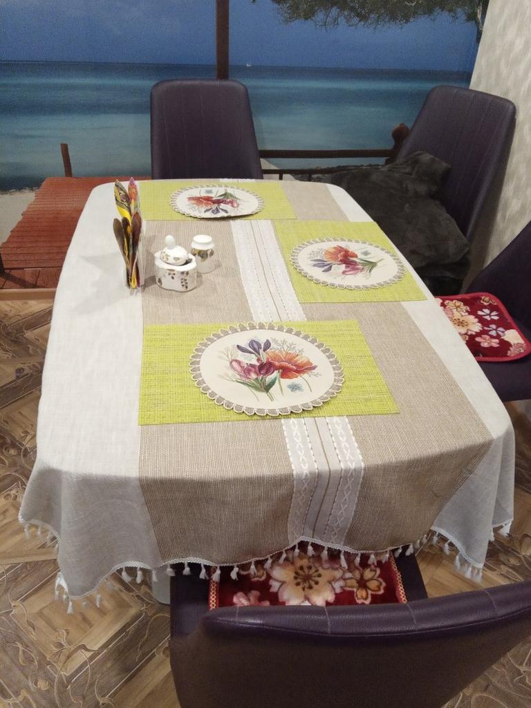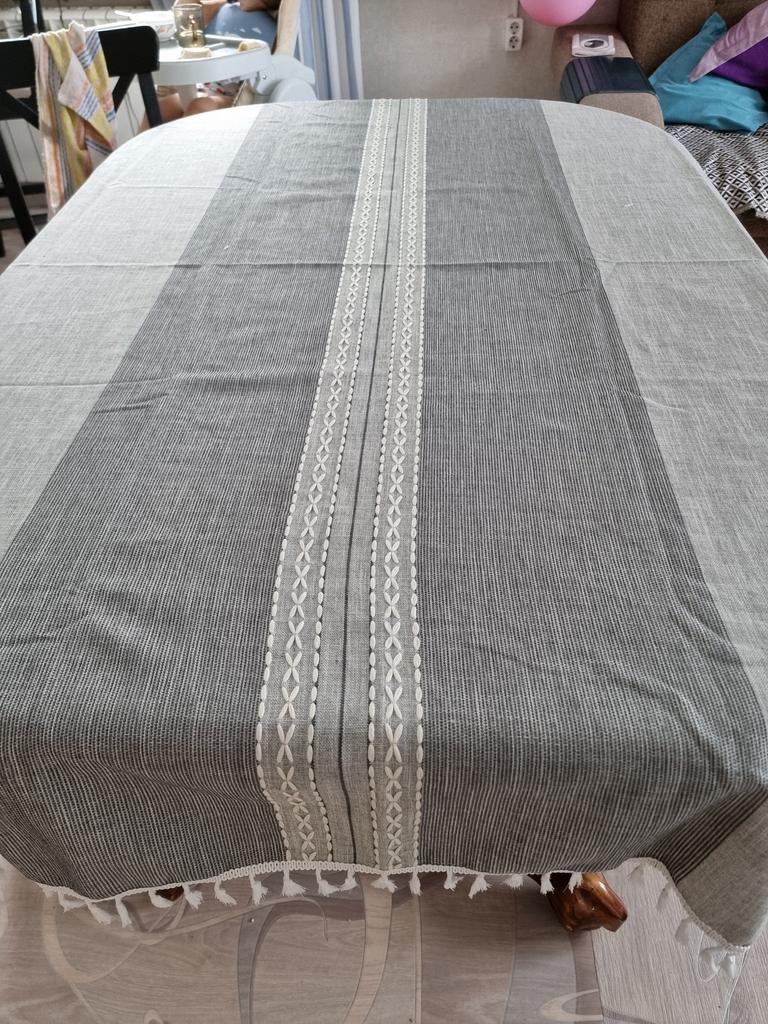 The tablecloth is gorgeous. The fabric, texture, density. It's a pity that it arrived with a huge stain, I'm afraid it won't wash out. I would like to exchange it(