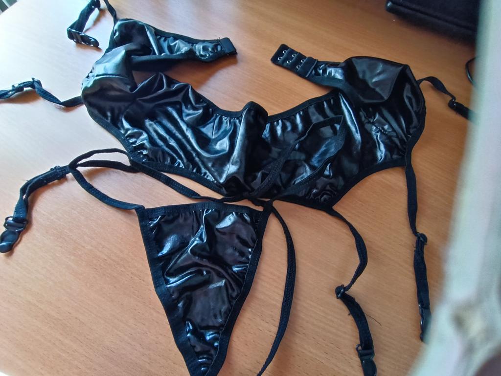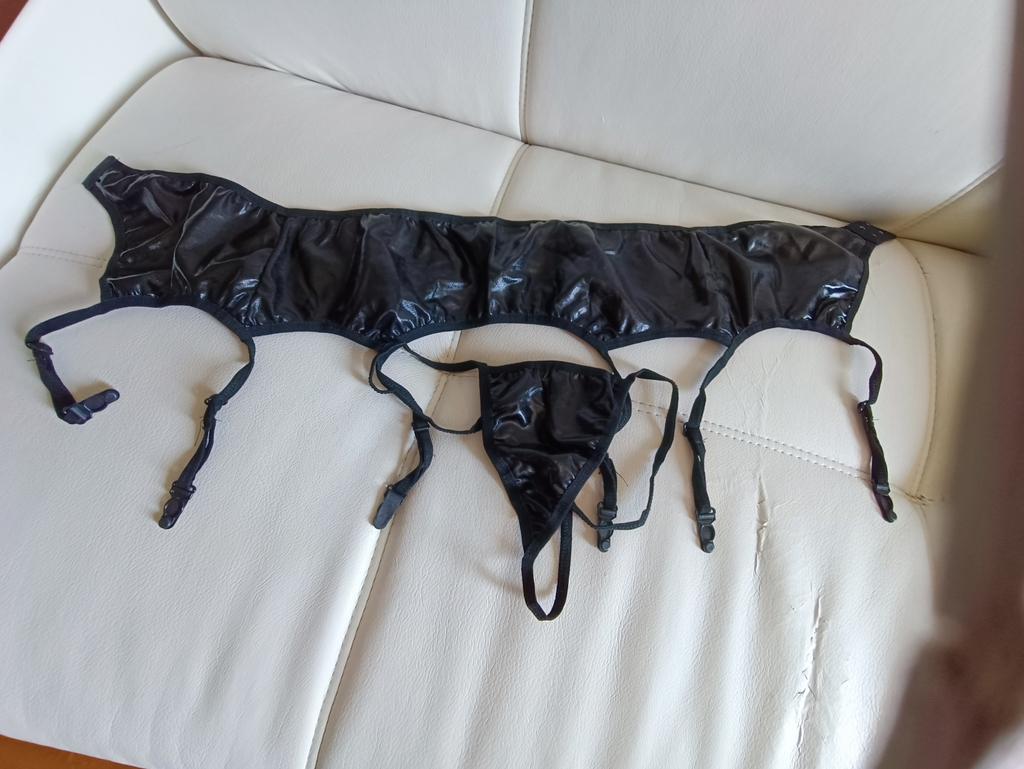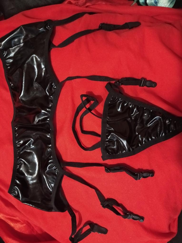 Female Sexy Metal Artificial Leather Latex Garter Strap Set Underwear
