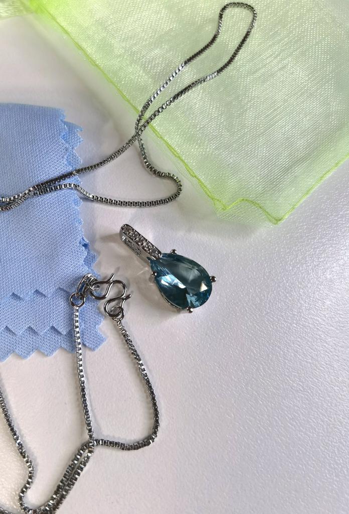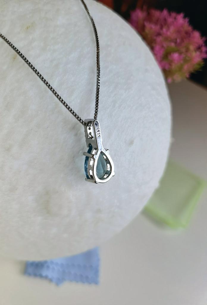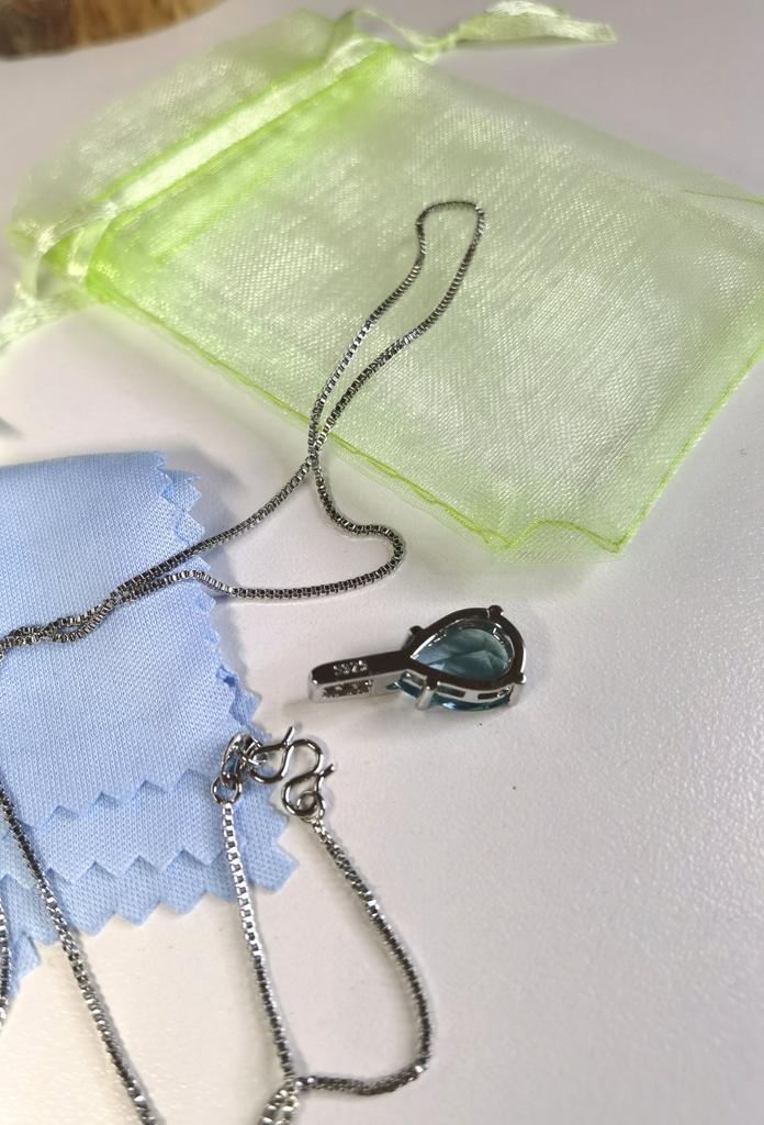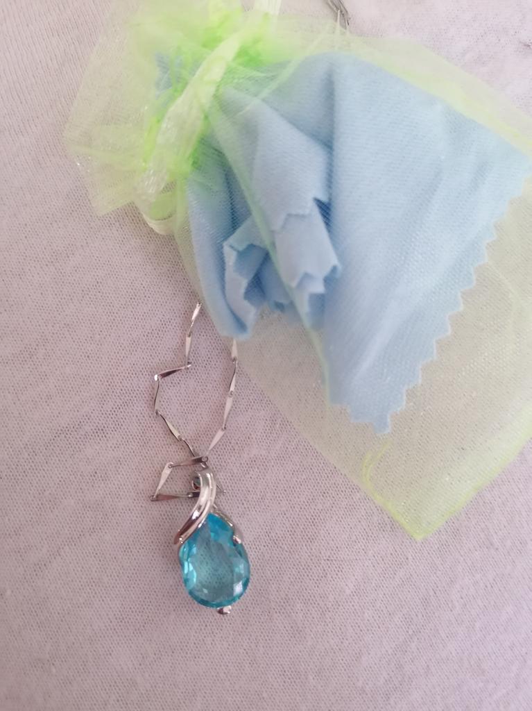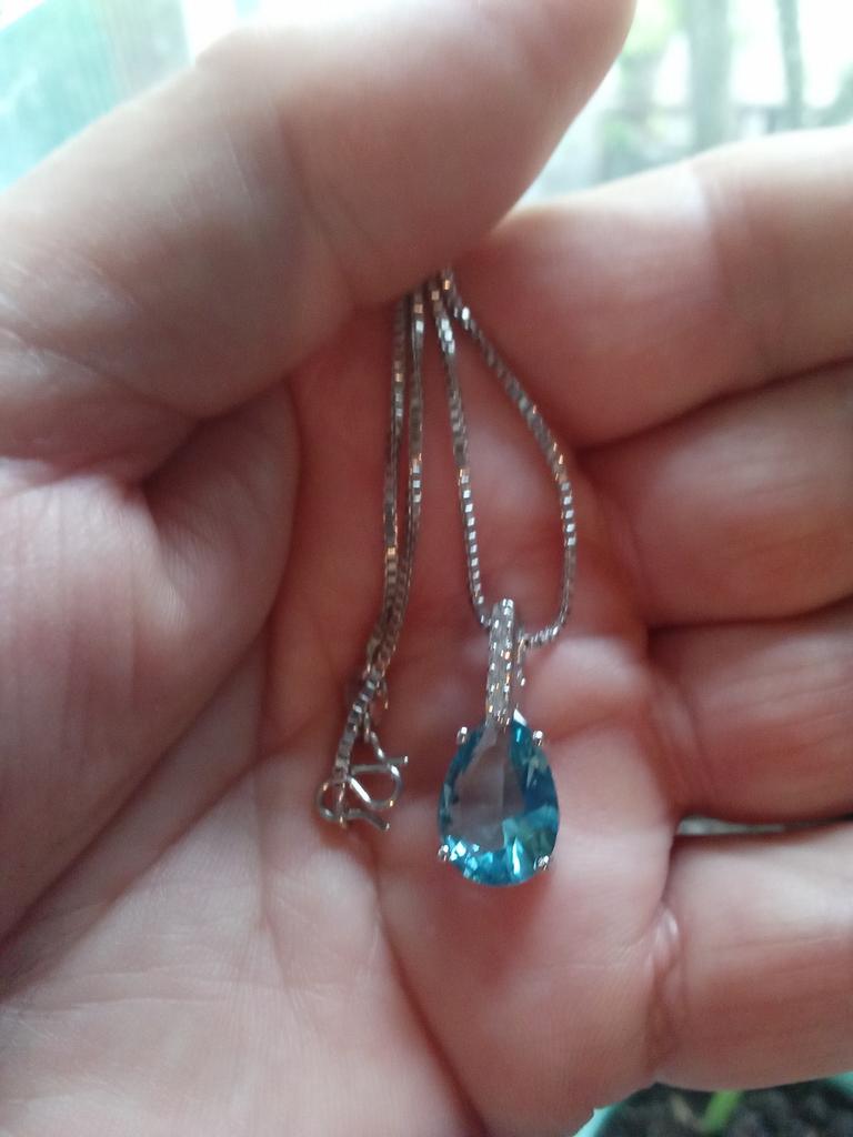 Elegant silver necklace with water drop pendant š I love this necklace from Lindon! It's truly beautiful. Quality is outstanding, made of genuine silver. There is a S925 tag on the back of the pendant and also on the necklace. It has a big Sapphire stone and 5 small zircon stones in a row above it. Received the package in 27 days at home. I advice šš ā¼ļø EDIT ā¼ļø I just tested the authenticity with a small magnet and both the necklace as the pendant seems to attract to it. That means that this is NOT real silver. It's probably an alloy of metals with a small layer of silver on top. It's pretty, but they shouldn't advertise this product as genuine silver š£