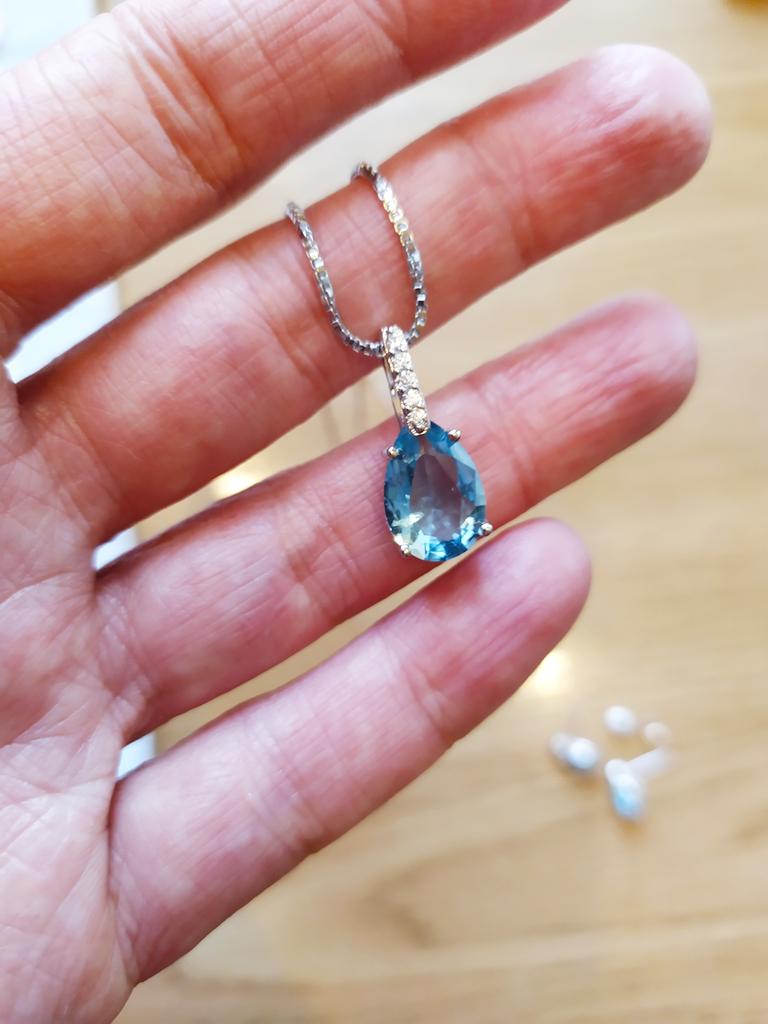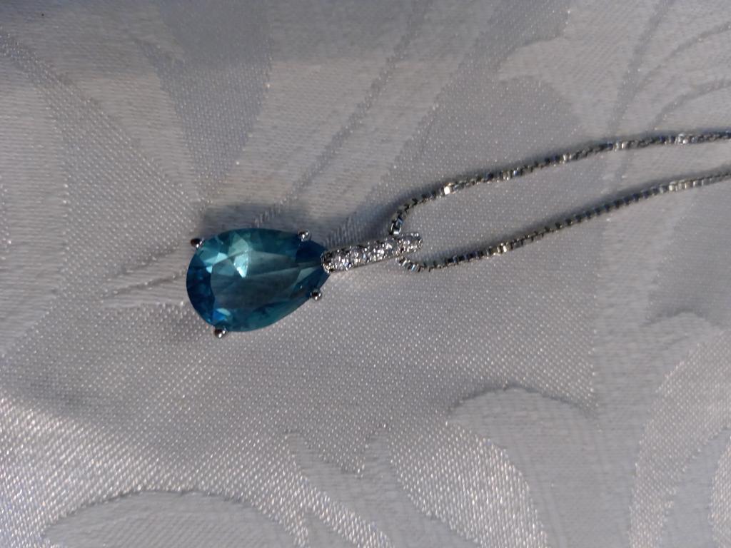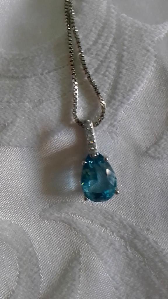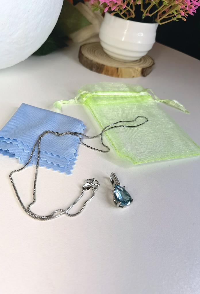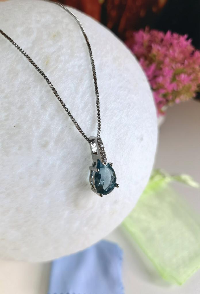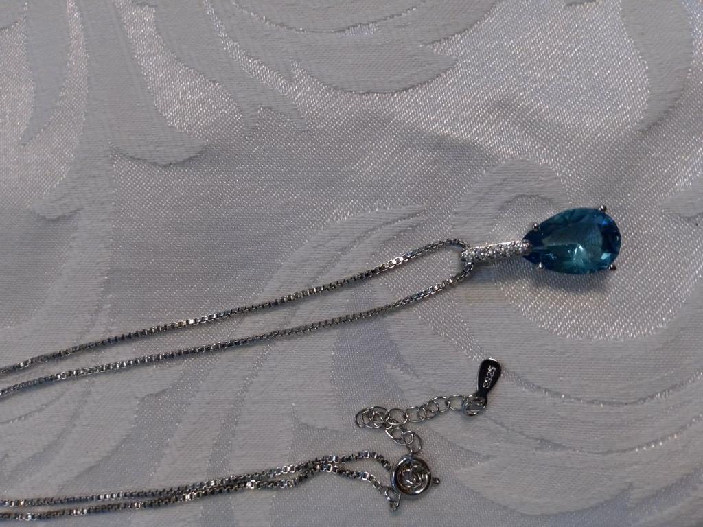 Elegant silver necklace with water drop pendant š I love this necklace from Lindon! It's truly beautiful. Quality is outstanding, made of genuine silver. There is a S925 tag on the back of the pendant and also on the necklace. It has a big Sapphire stone and 5 small zircon stones in a row above it. Received the package in 27 days at home. I advice šš ā¼ļø EDIT ā¼ļø I just tested the authenticity with a small magnet and both the necklace as the pendant seems to attract to it. That means that this is NOT real silver. It's probably an alloy of metals with a small layer of silver on top. It's pretty, but they shouldn't advertise this product as genuine silver š£