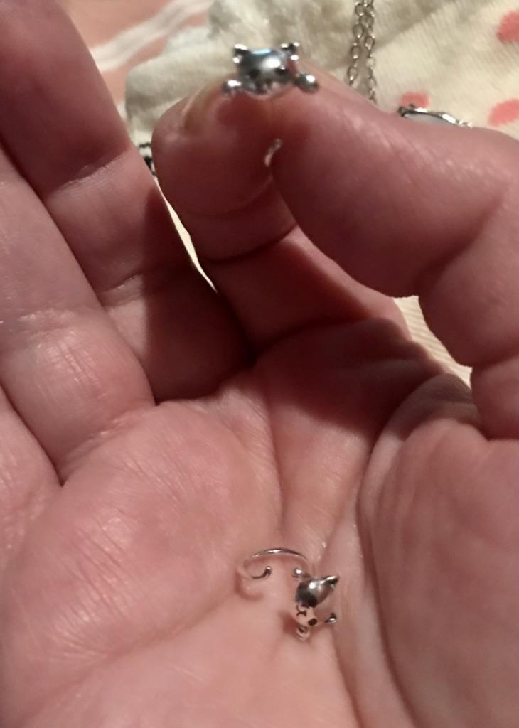 Omg they are just adorable, but pretty difficult to get them on, unless you're a little child. And I guarantee you they are not Sterling silver. After I finally got them in, I decided to just leave them in because they're so cute. Well, in the middle of the night, I woke up and my ears were really sore and I am not allergic to Sterling silver. I know a lot of these dealers claim 925 sterling silver, but they never are. They also wouldn't really stay in the position where they should. So, because I just love them, I'm going to somehow hang them from a pair of real silver ear wires. I make jewelry, so I have lots of things to work with. Just an idea