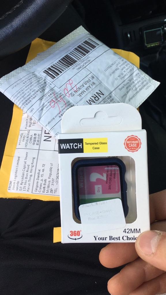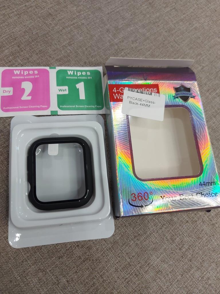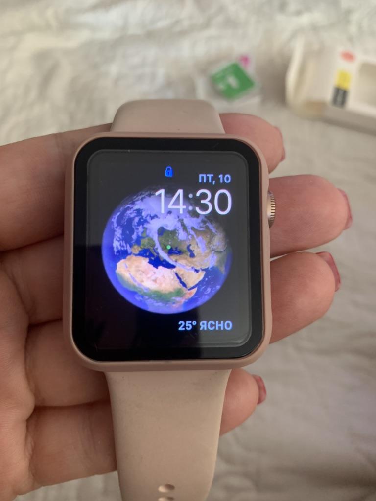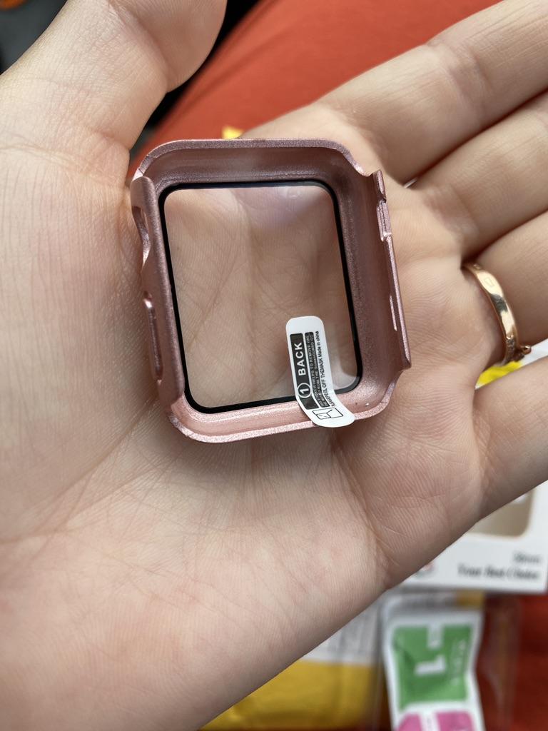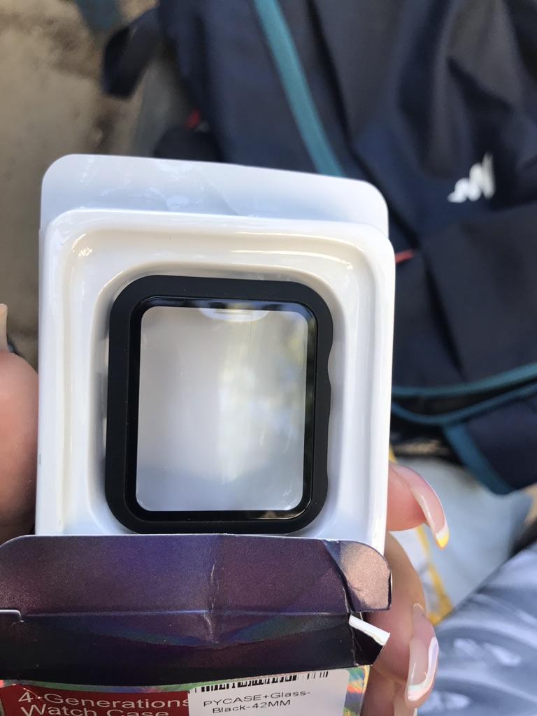 Fits my Apple Watch perfectly Very easy to put on the watch It clips on The screen reacts very well with the protection Sold with two small tissues to clean the screen I recommend!!