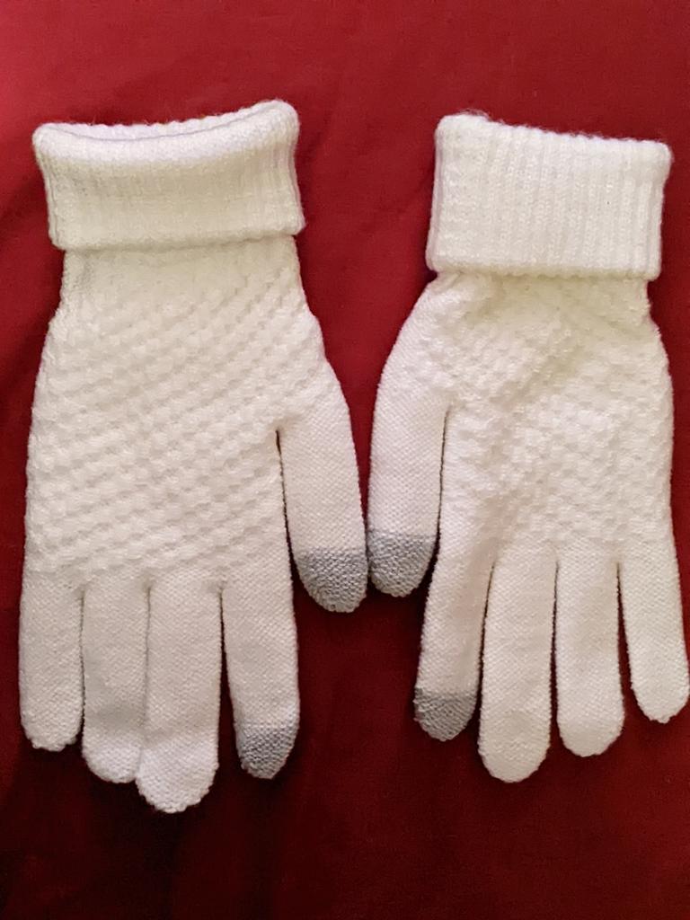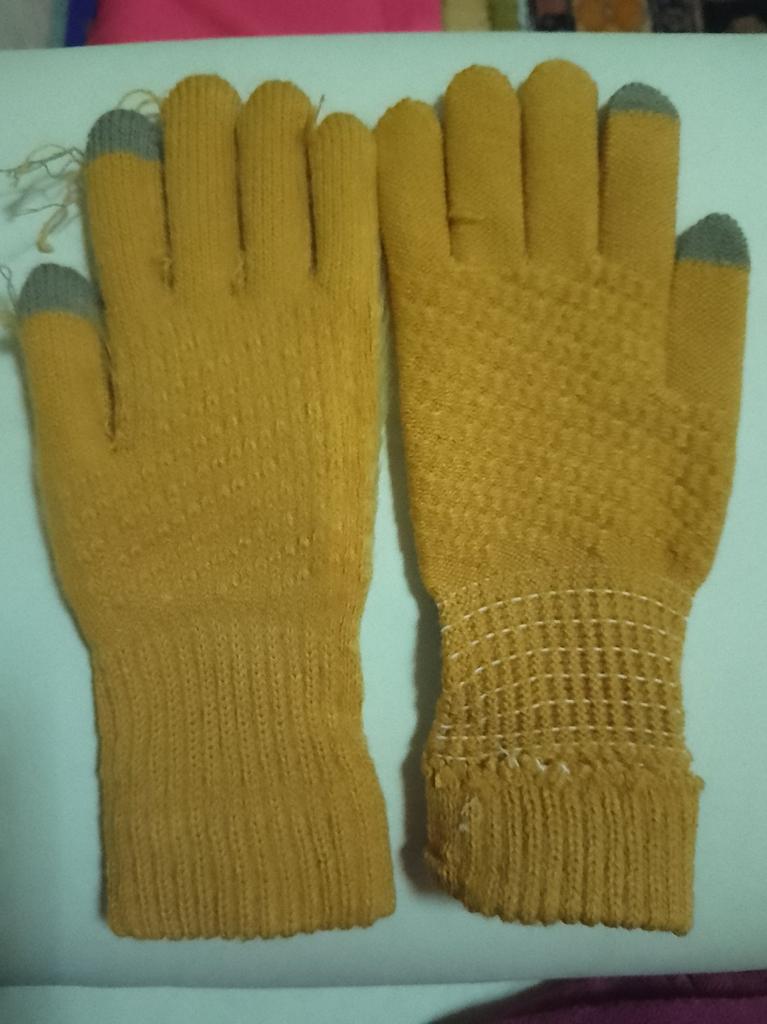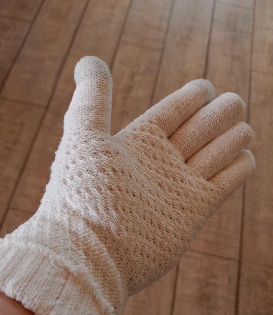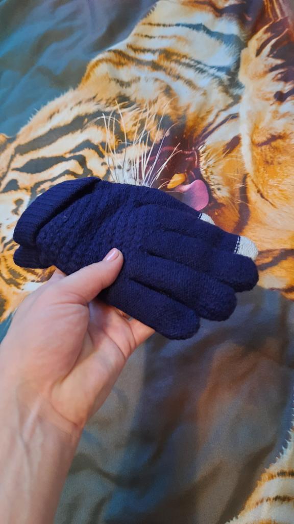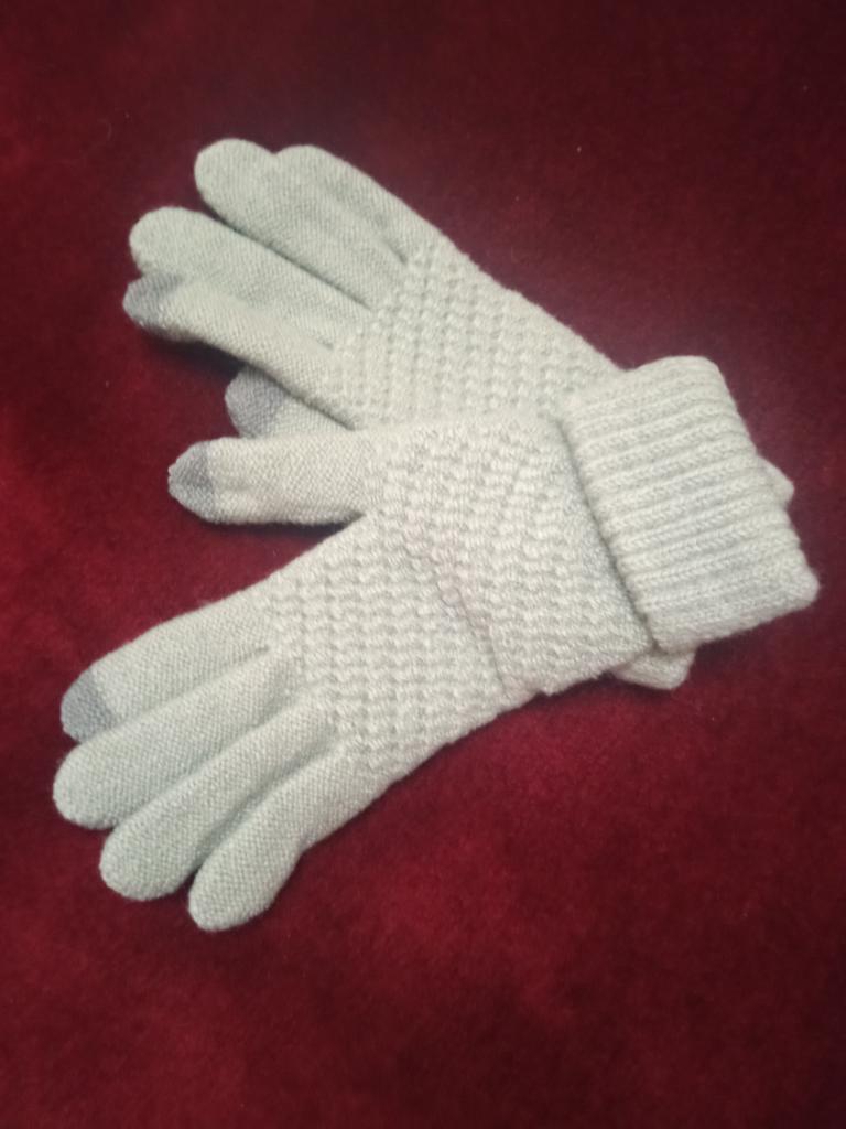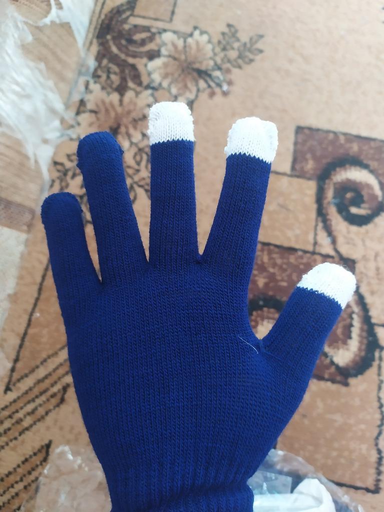 Excellent gloves. For a small hand will be large. I have long fingers and the palm itself is wide - I hoped very well, freely. The knit is very soft. Warm, for a temperate climate. The fingers are simply knitted from a different color of thread, there is no special material, but the phone responds. Great gloves!